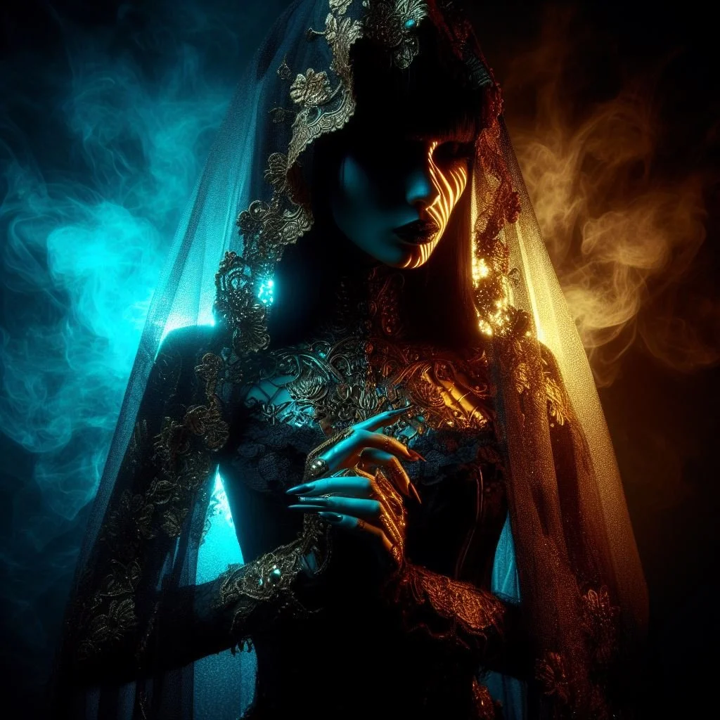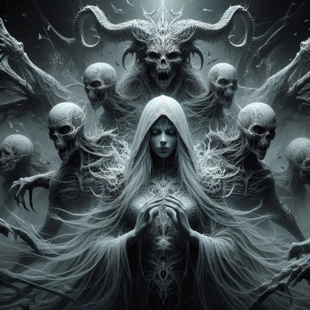 A uniquely recognizable voice in the AI art world, asrael creates exclusively in square format, composing darkly ethereal visions that feel like fragments of forgotten nightmares. Her world is one of death and demons, dragons and monsters, moons and horses, twisted trees and ruined gothic spires. Drawing from literature, history, and the raw material of her own emotions, her art moves between high fantasy and gothic horror, touching even on the serenity of nature—though never without an undercurrent of mystery or dread.