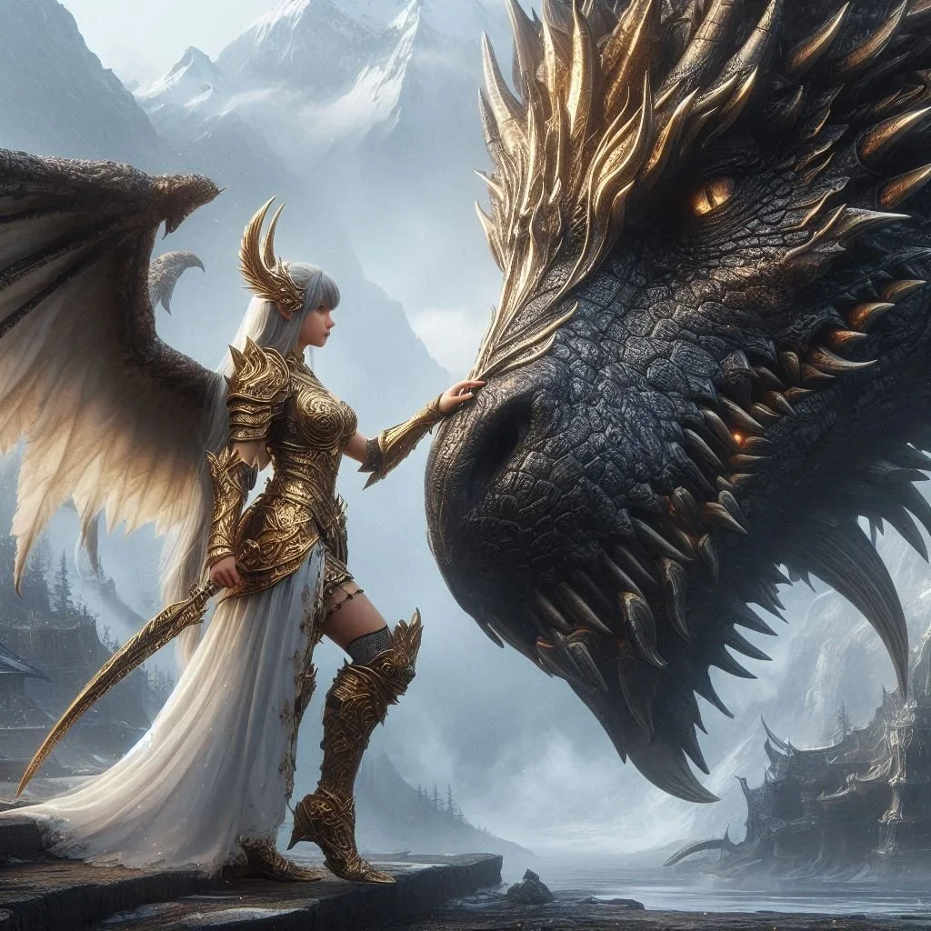 There’s something deeply poetic in the way she conjures light within darkness. asrael’s compositions are meticulously detailed, balancing the surreal and the sublime: collapsing cathedrals with skull-like façades, skeletal monarchs cloaked in sorrow, hourglass clocks suspended in celestial gloom. Even her dragons are creatures of nightmare, more shadows than scales, towering and spectral.