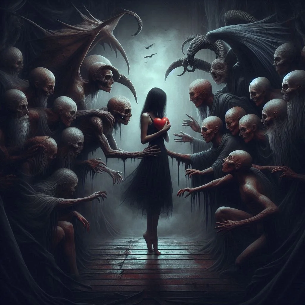 I'm inspired by all kinds of things. Horror and fantasy films and books, of course, but also nature and my own mood and whims. It's often just a bird that I see that gives me an idea. But sometimes, it's the AI itself that inspires me and leads me down a certain path.