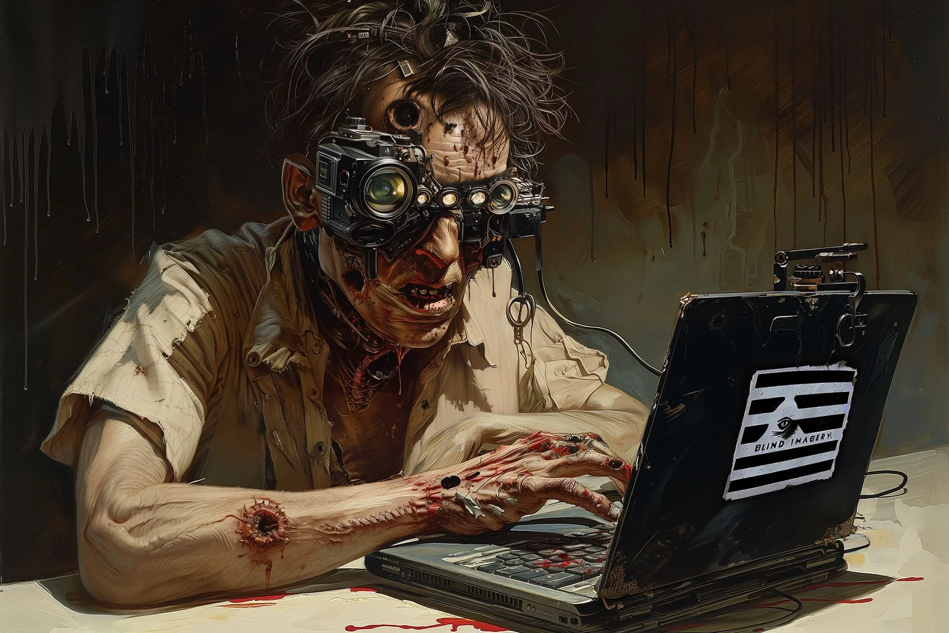 His overall style carries the spirit of pulp horror, evoking a sense of fear and dread, yet always with an artistic touch that sets his work apart. The imagery is graphic, visceral, and often unsettling—certainly not for the faint of heart. Yet it is this very boldness, this unapologetic dive into the realms of fear and the grotesque, that makes BlinD Imagery’s art so distinctive. He taps into the depths of the human psyche, crafting pieces that provoke strong emotional responses, whether through terror or awe.