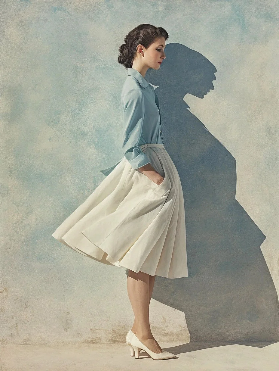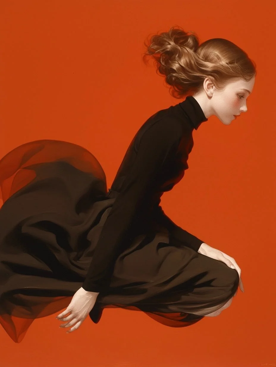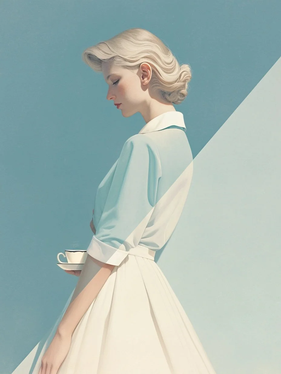 Celeste’s work is refreshingly simple yet profoundly beautiful. Her images often feature soft, pastel tones, sometimes with washed-out colors, and minimalist compositions that embody elegance, allowing each piece to breathe without unnecessary complexity. She creates mesmerizing, stunning black-and-white portraits that lend a timeless quality to her art, while most of her color choices enhance the dreamlike sense that her characters are somewhat floating in—or rather inhabit the very fabric of the space they occupy. Each image reveals her strong sense of fashion and style, resulting in figures that seem ethereal yet grounded.