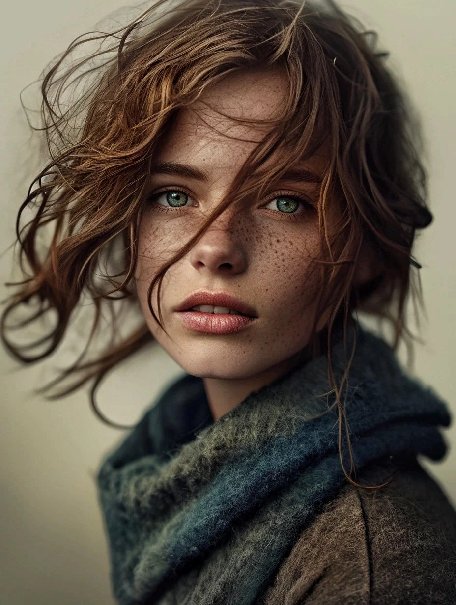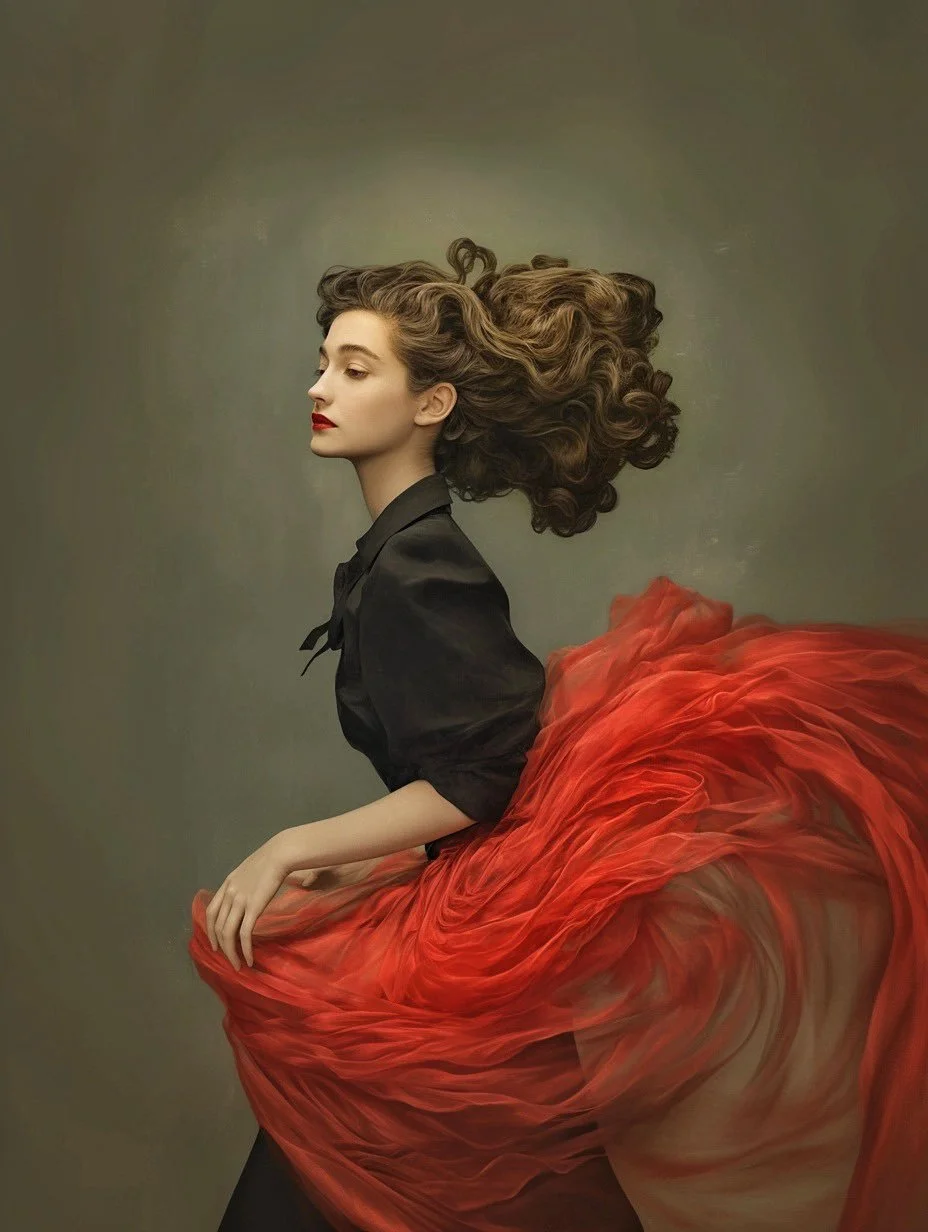Celeste’s AI portraits—almost exclusively close-ups of women—carry a distinct blend of strength and vulnerability, capturing the beauty and complexity of femininity with grace. These portraits possess a quality akin to those by a celebrated photographer, with a mesmerizing presence that invites viewers to see beyond the surface. Far from the overly polished beauty AI often offers, her portraits reveal beauty in its purest form—an artistic touch that is both real and timeless.