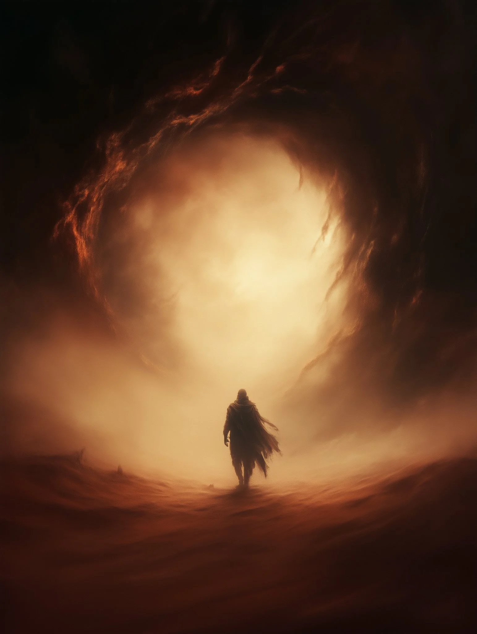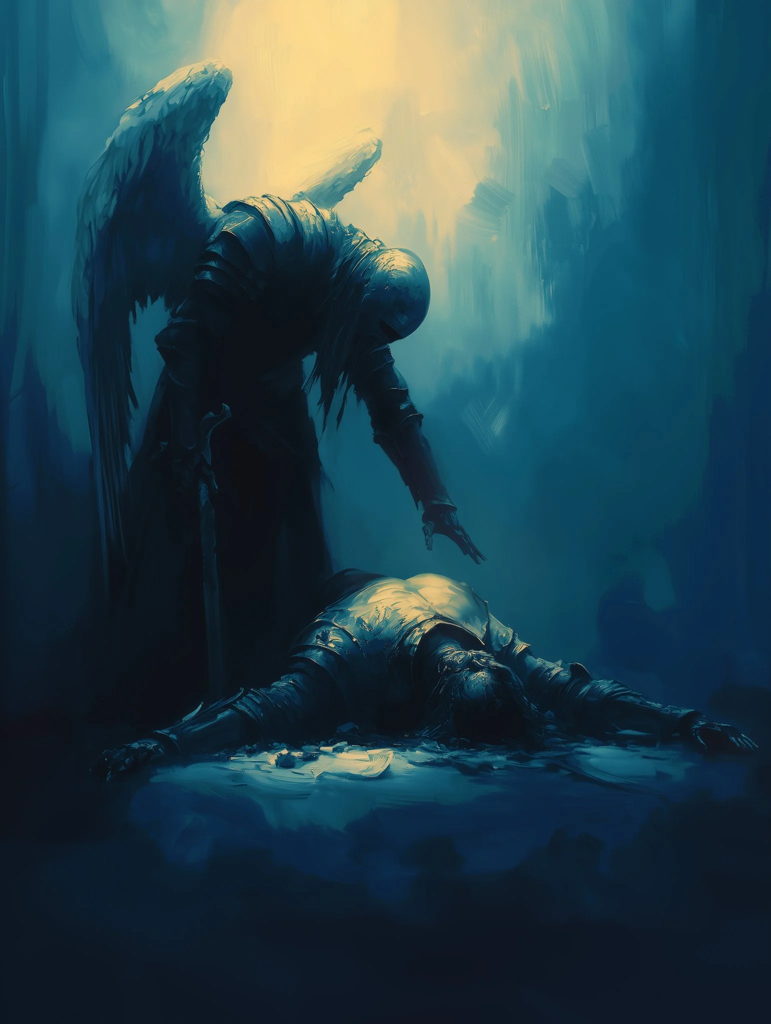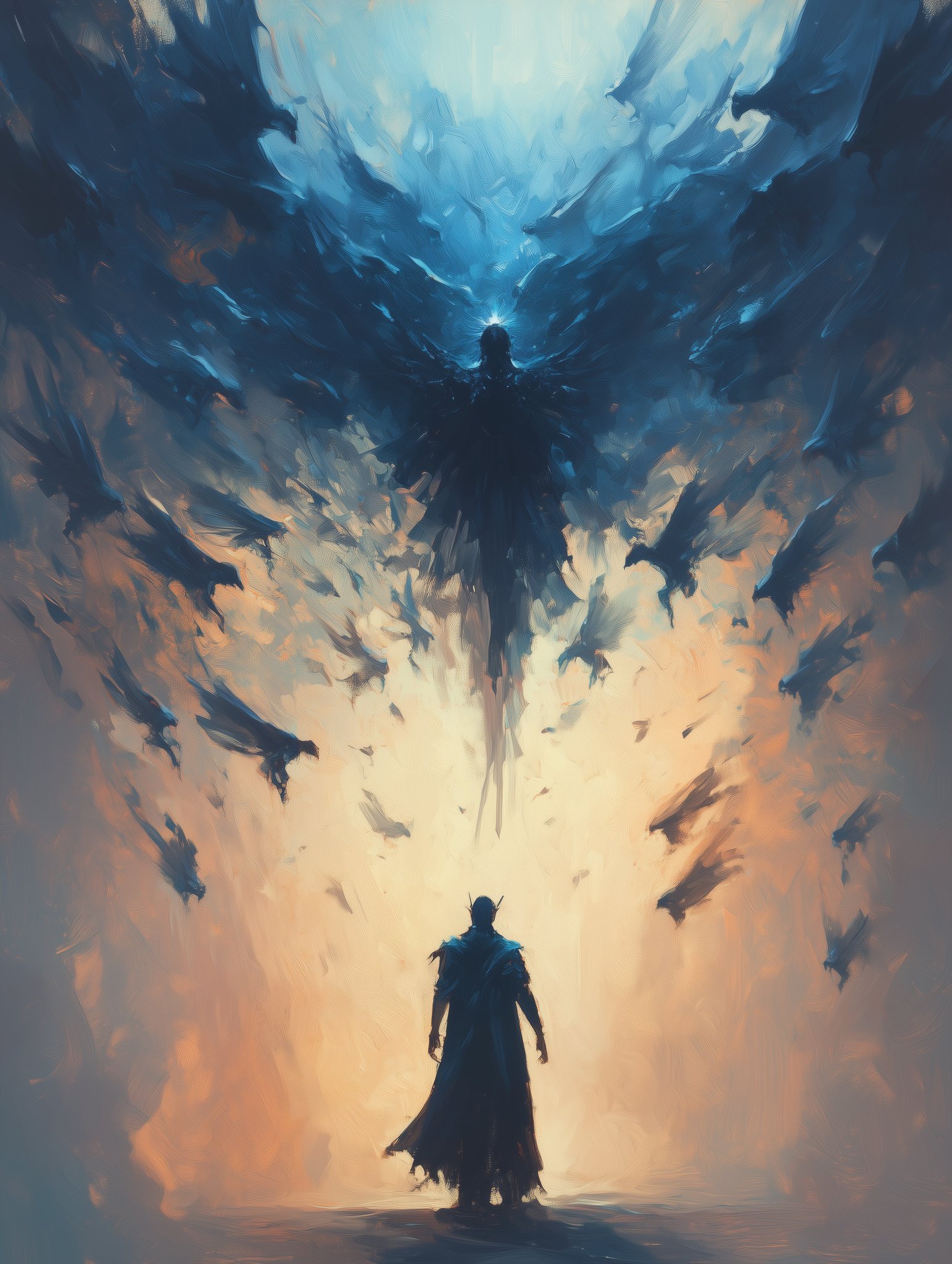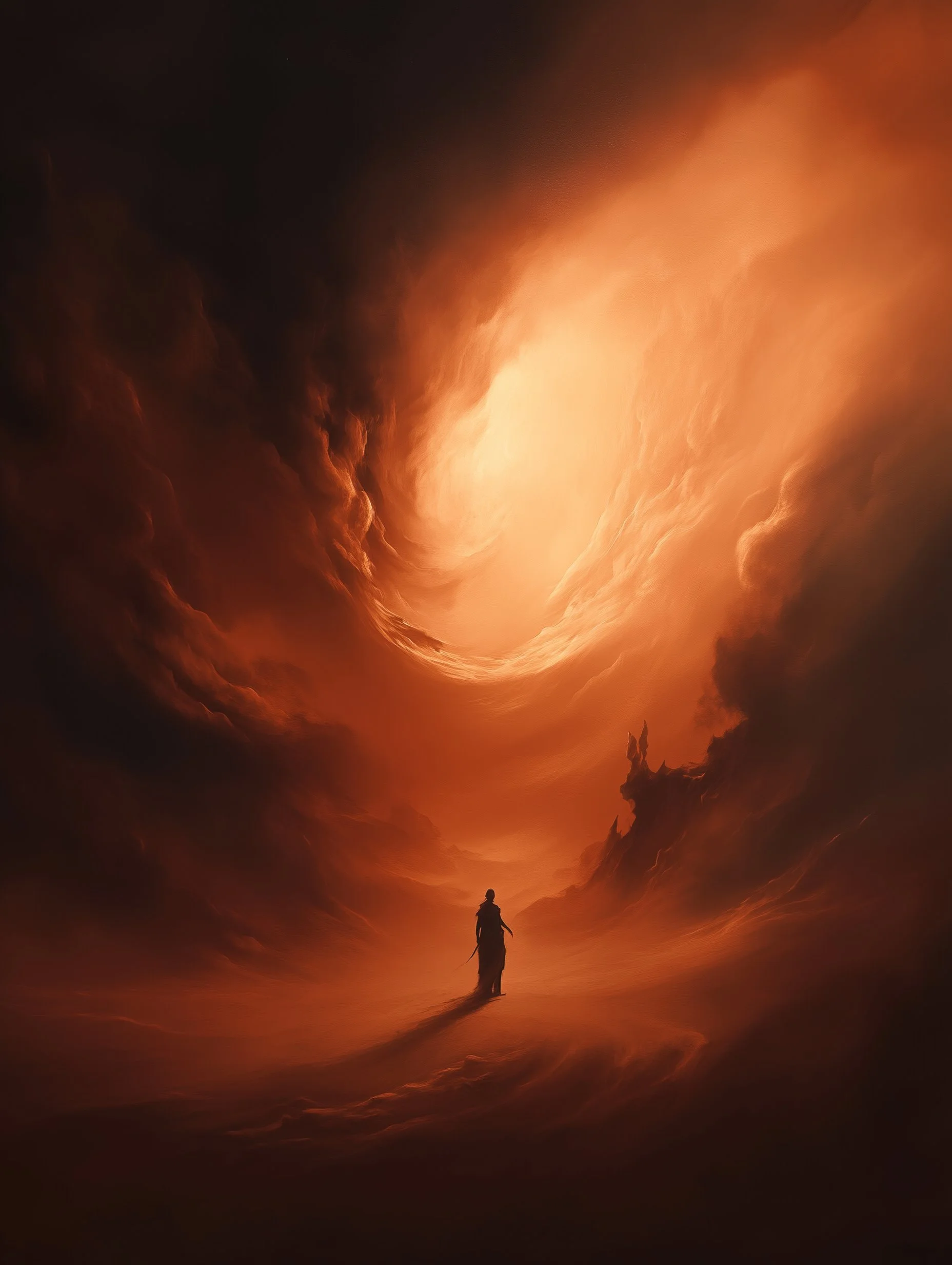 Through a high level of realism and intricate detailing, his work balances dark fantasy with moments of serene beauty. The interplay of shadow and illumination transforms his subjects, whether they are mythic warriors, celestial beings, or lone travelers in an unforgiving yet breathtaking landscape. Every piece speaks of transformation—emergence, rebirth, or the passage between realms—inviting the viewer into a world both mysterious and evocative.