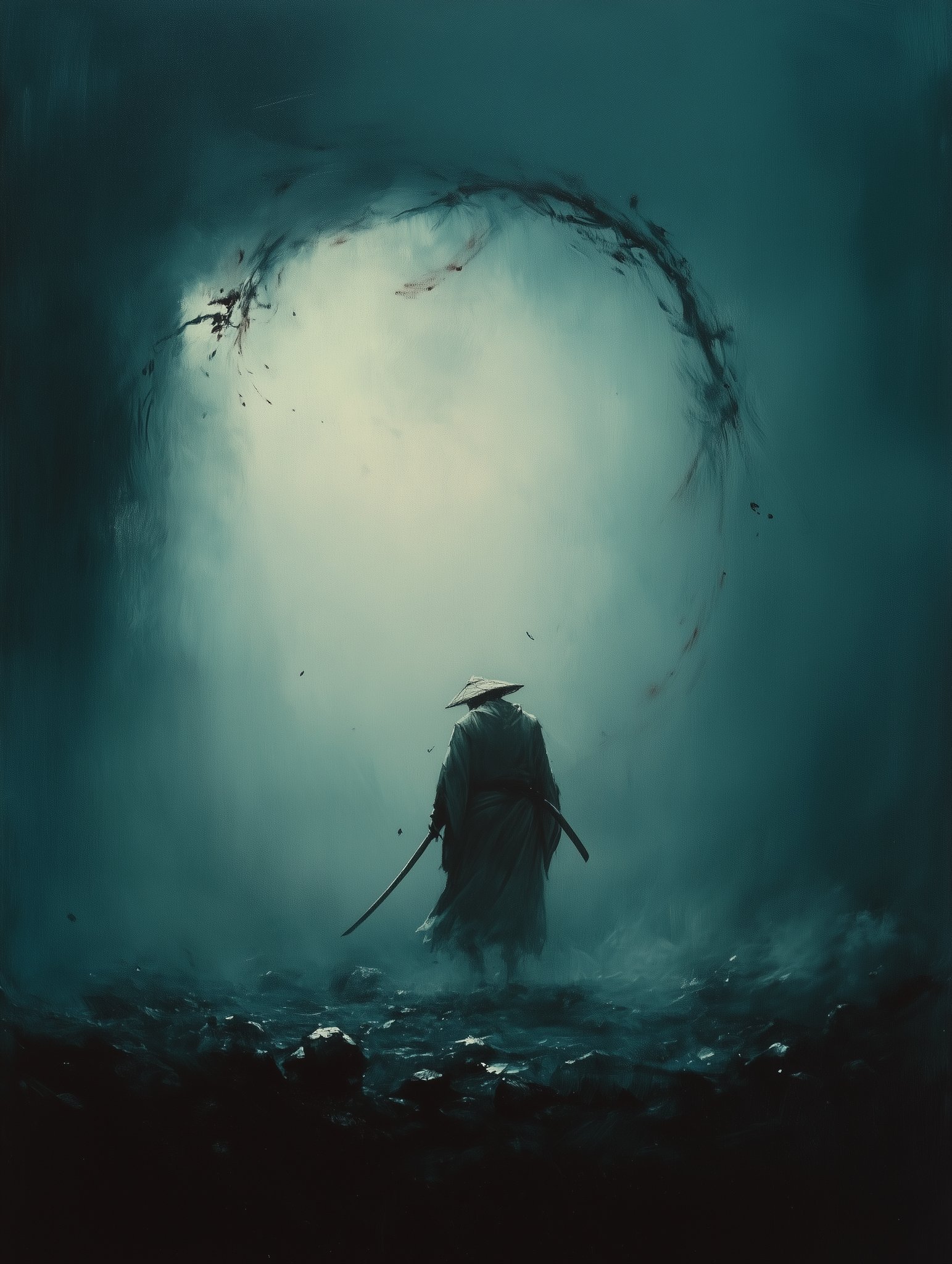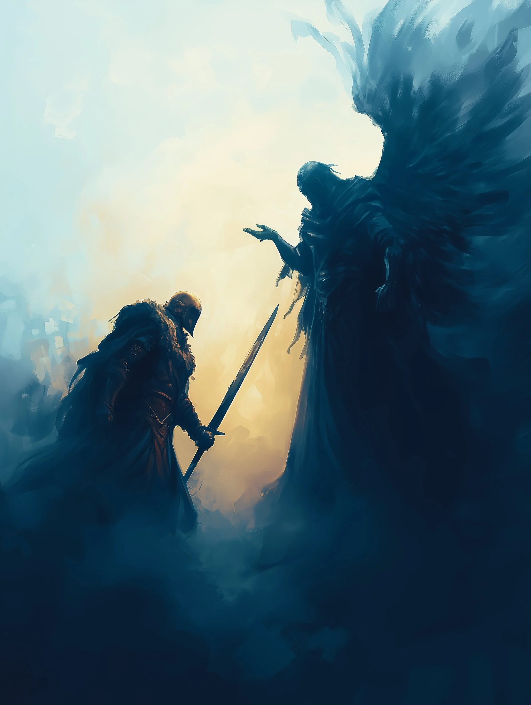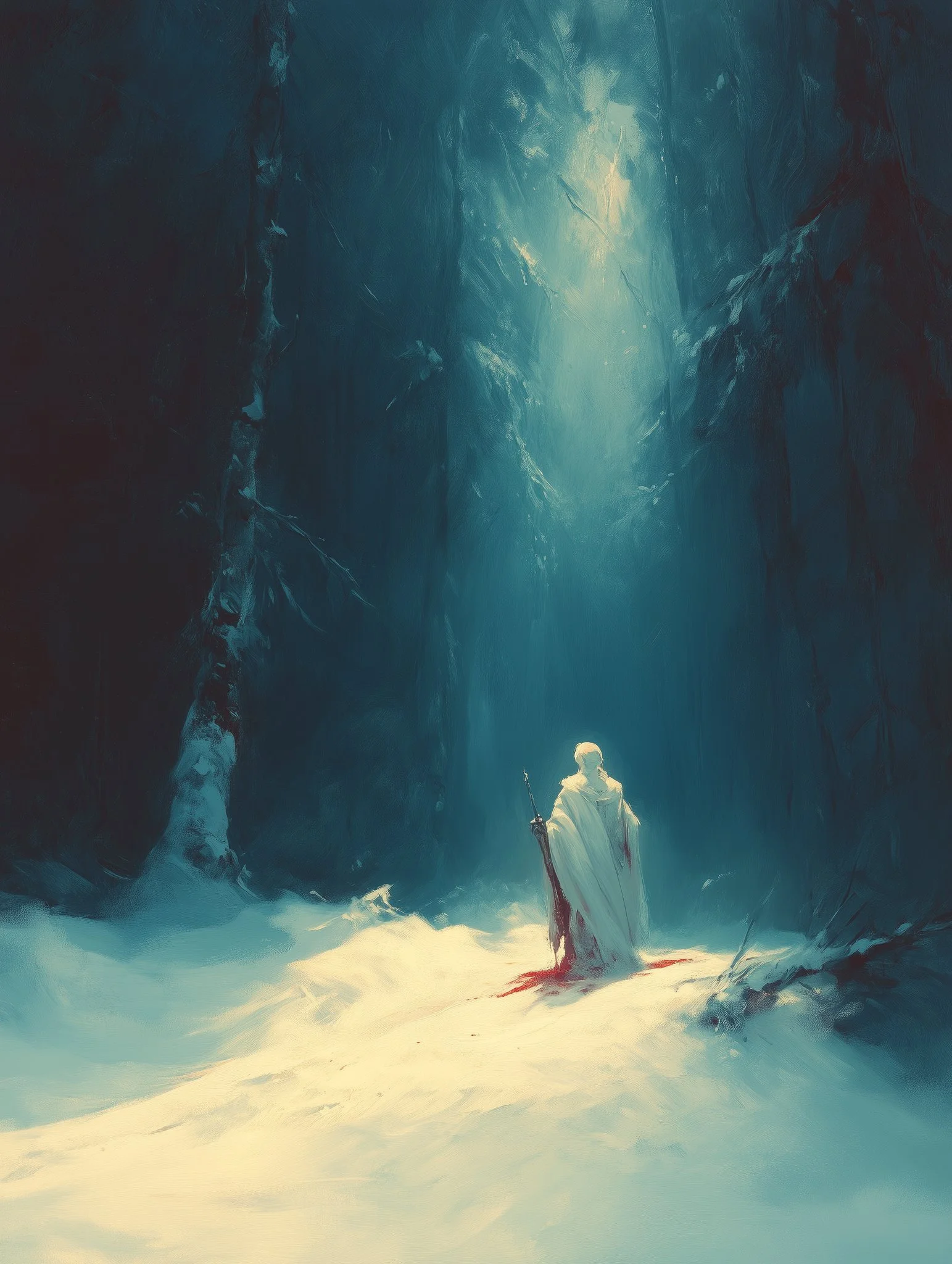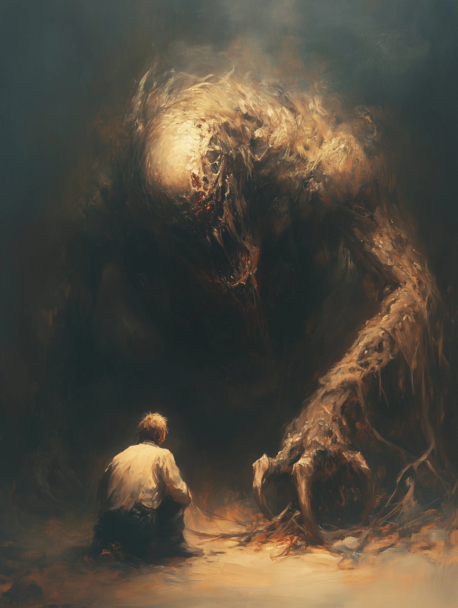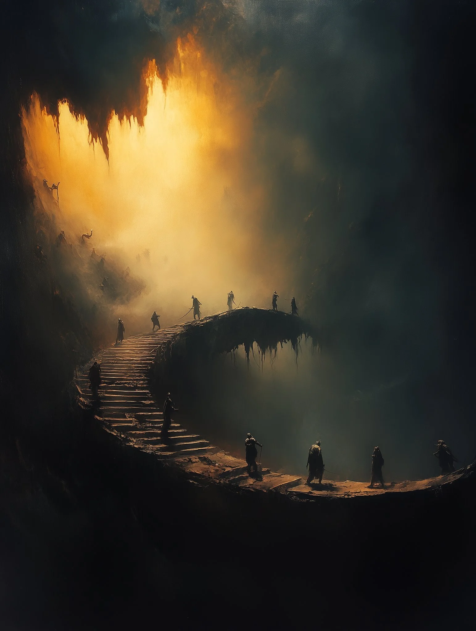 Through a high level of realism and intricate detailing, his work balances dark fantasy with moments of serene beauty. The interplay of shadow and illumination transforms his subjects, whether they are mythic warriors, celestial beings, or lone travelers in an unforgiving yet breathtaking landscape. Every piece speaks of transformation—emergence, rebirth, or the passage between realms—inviting the viewer into a world both mysterious and evocative.