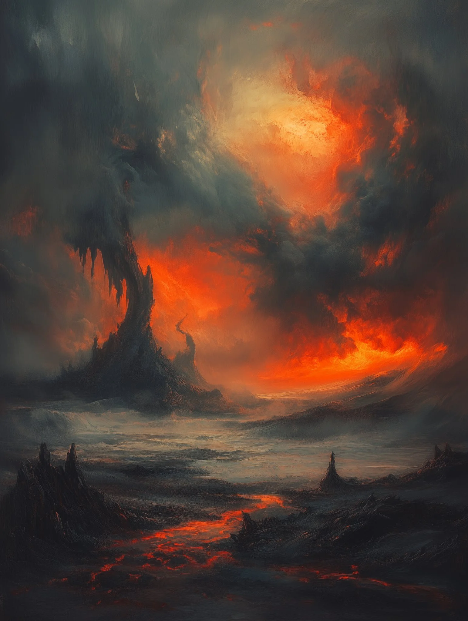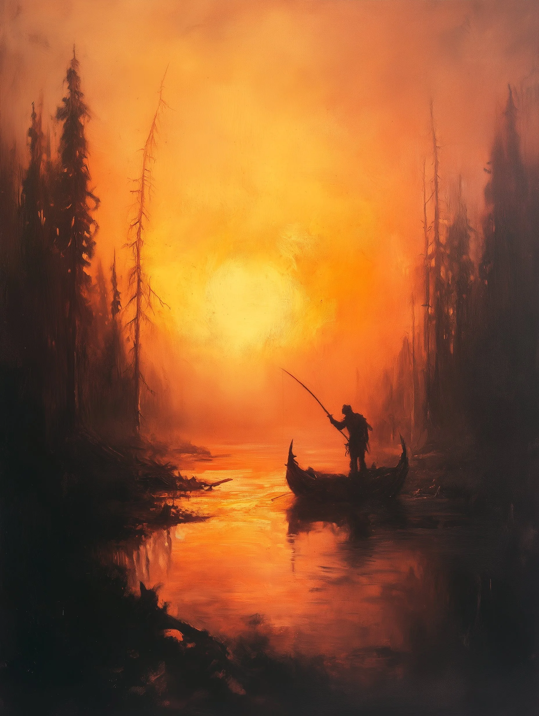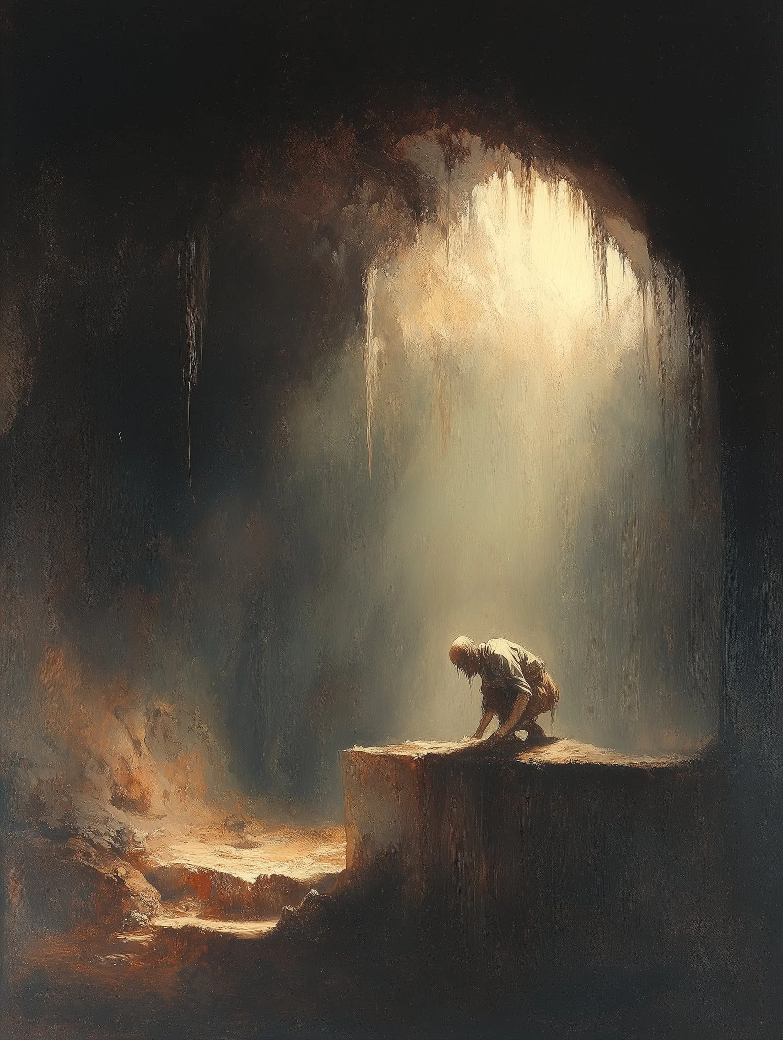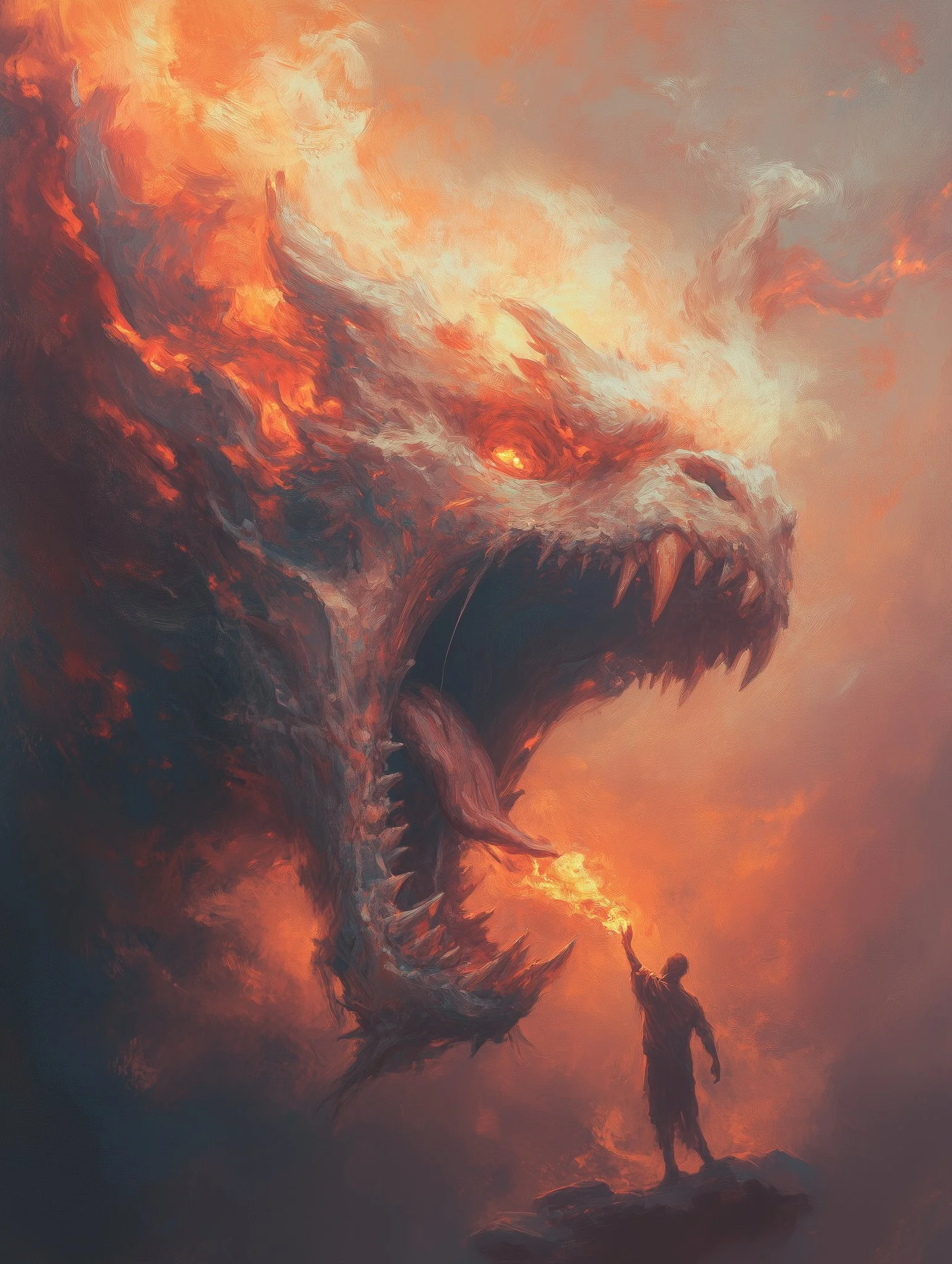 Through a high level of realism and intricate detailing, his work balances dark fantasy with moments of serene beauty. The interplay of shadow and illumination transforms his subjects, whether they are mythic warriors, celestial beings, or lone travelers in an unforgiving yet breathtaking landscape. Every piece speaks of transformation—emergence, rebirth, or the passage between realms—inviting the viewer into a world both mysterious and evocative.