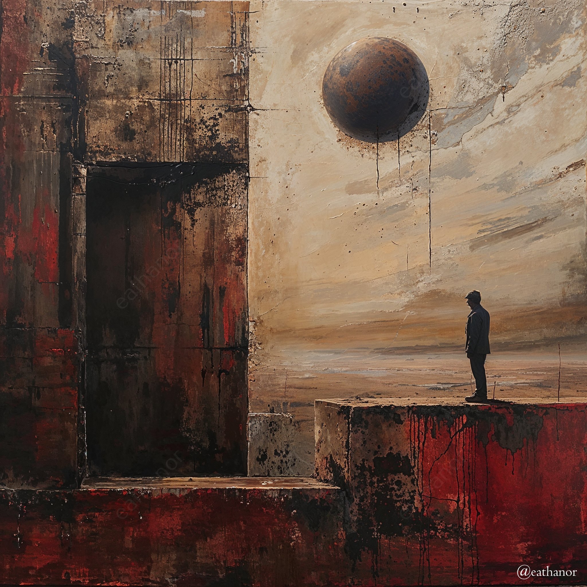 Eathanor, or @eathanor on X, presents its audience with the essence of dreams and nightmares alike, weaving a tapestry of surrealism, time, and the desolation of a world gone astray. His distinctive style, coupled with a steadfast commitment to a square 1:1 format, renders his illustrative art enchanting, haunting, and consistently mesmerizing. Each piece is a journey into the depths of imagination, where beauty and terror intertwine to captivate us, the viewer. I am honored and grateful to have him join us for this interview.