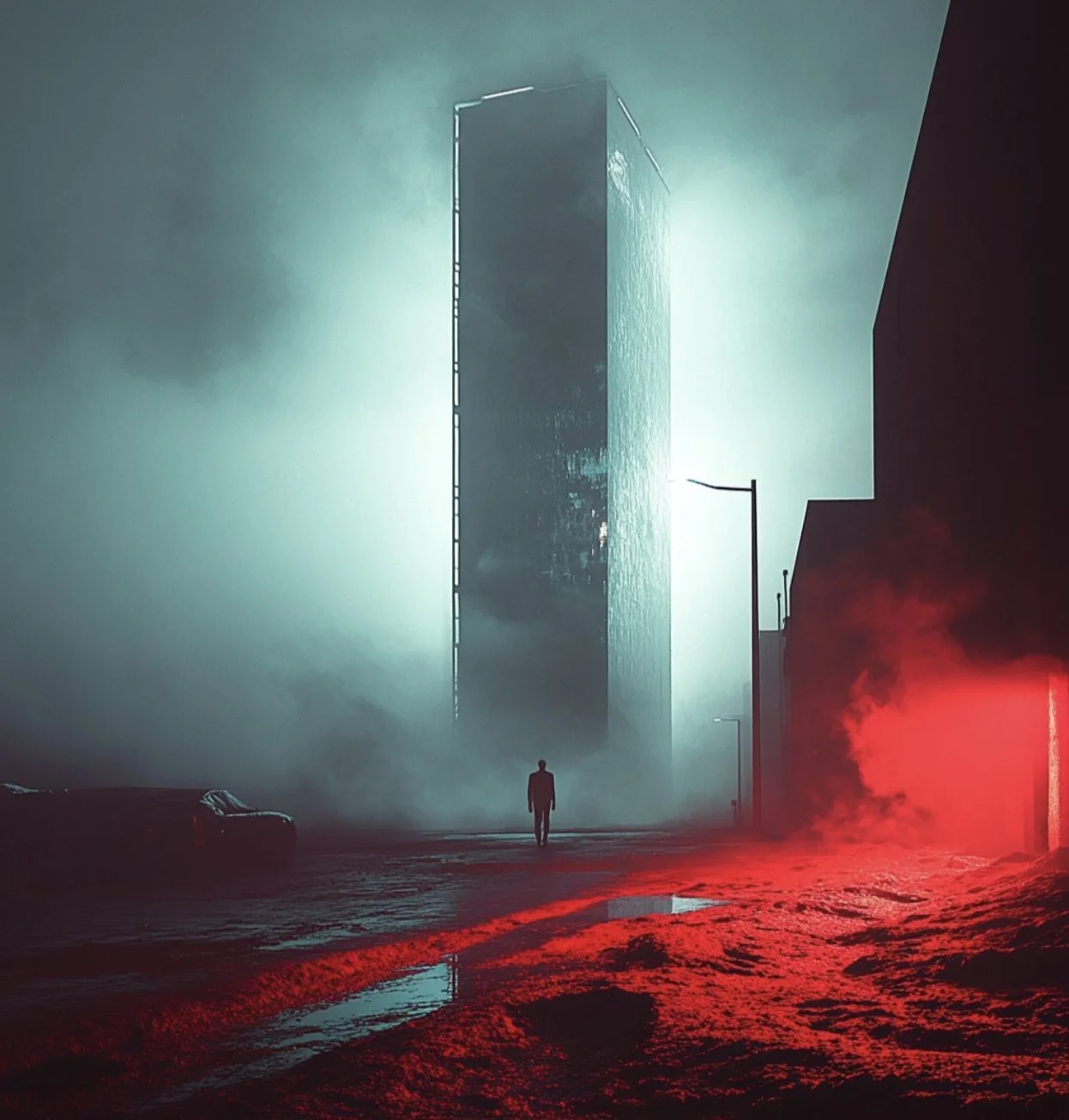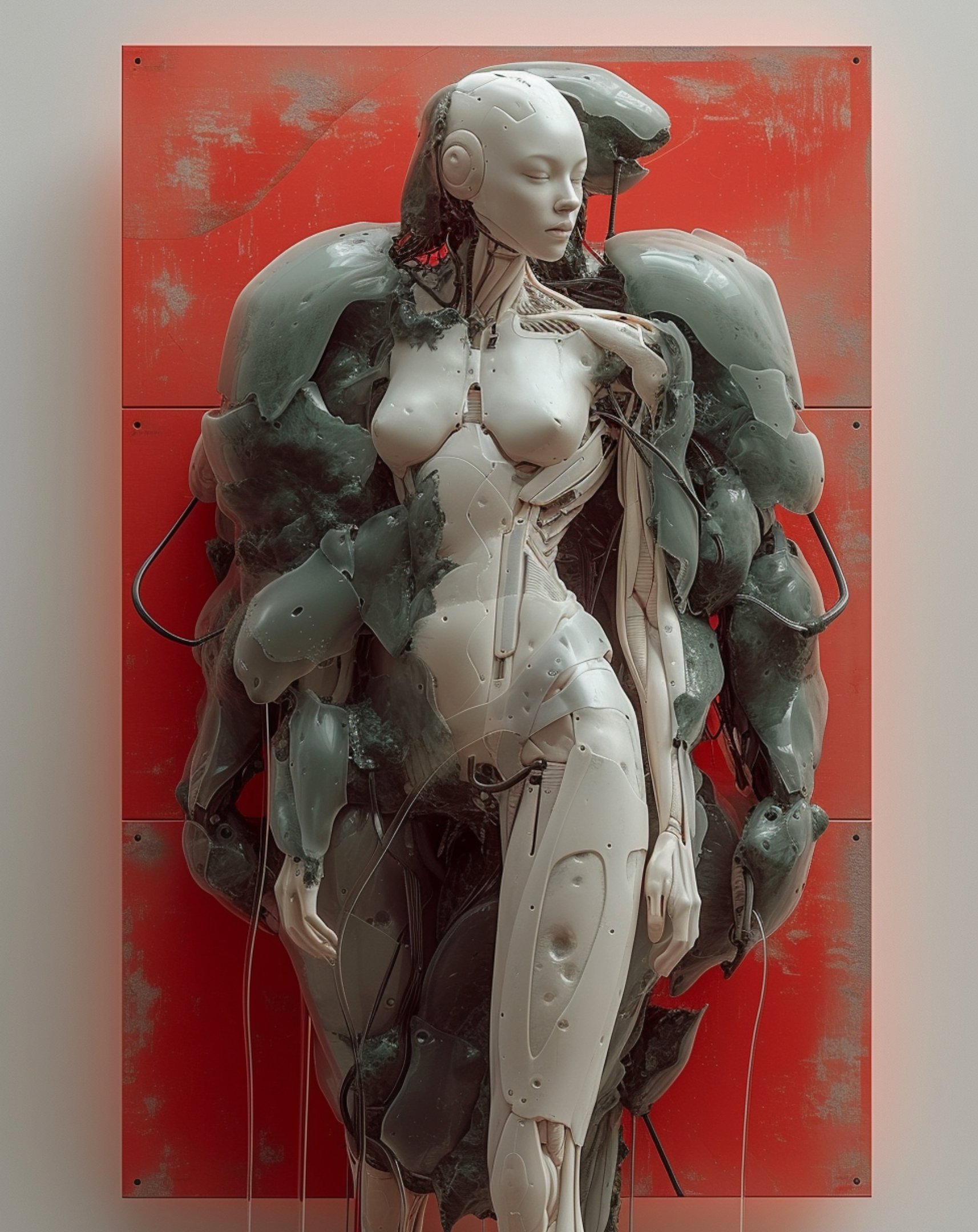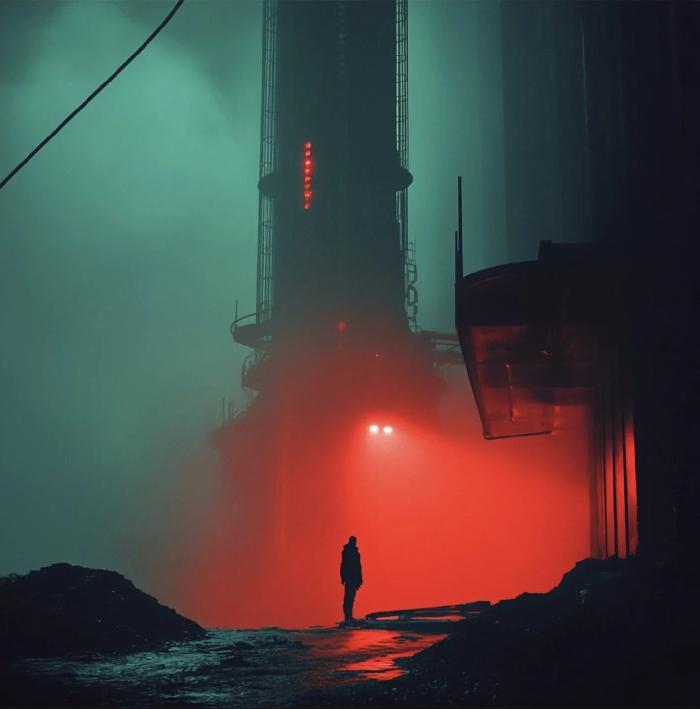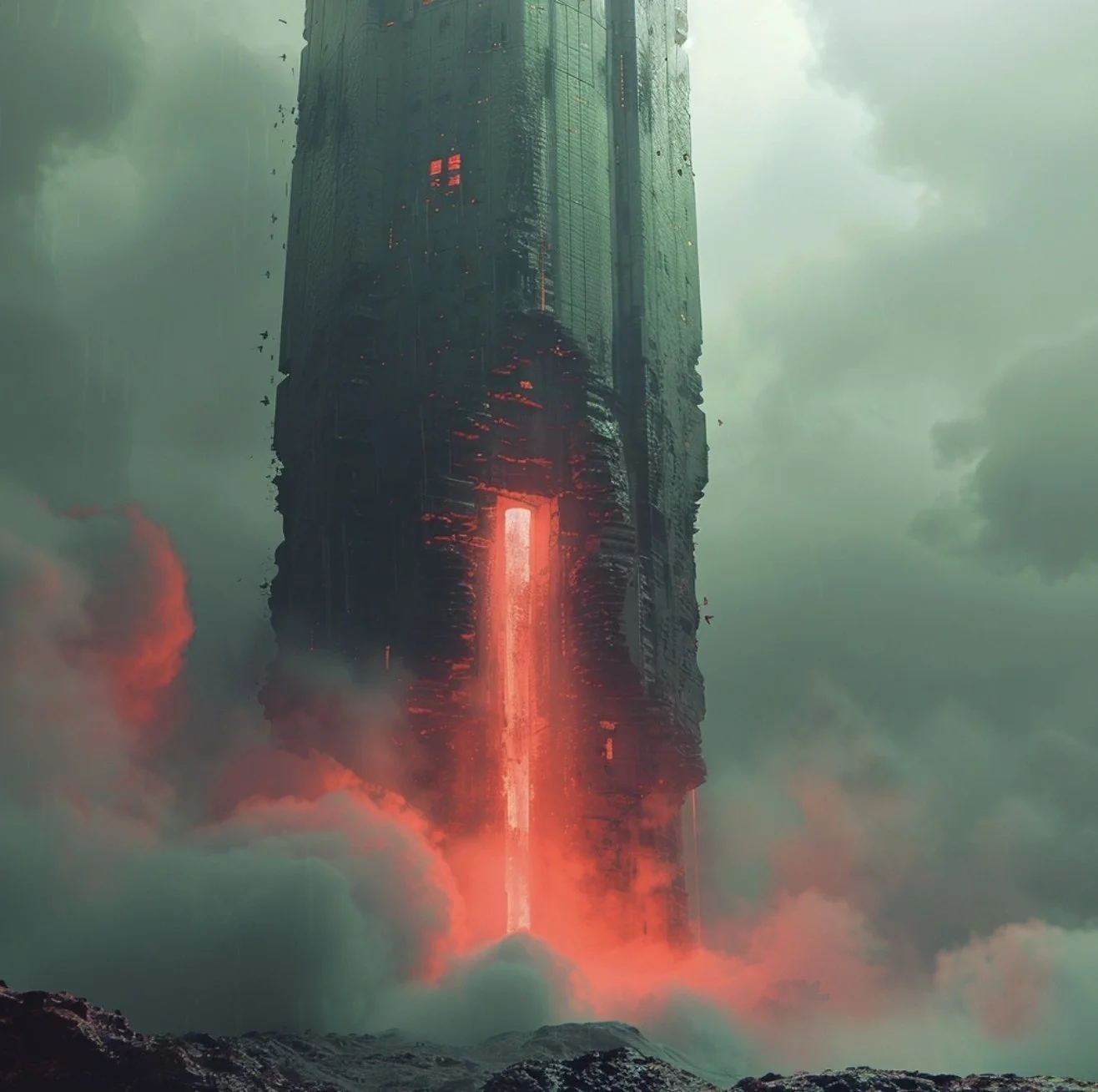 Beyond portraits, hrmny_25’s art often scales human figures against vast dystopian backdrops, creating scenes that are both awe-inspiring and hauntingly beautiful. This is where his use of reds and blacks shines and where his mastery in blending human elements with grand, imposing sci-fi landscapes makes his work not only visually stunning but also deeply evocative, inviting us to ponder the place of humanity within these expansive, speculative settings.