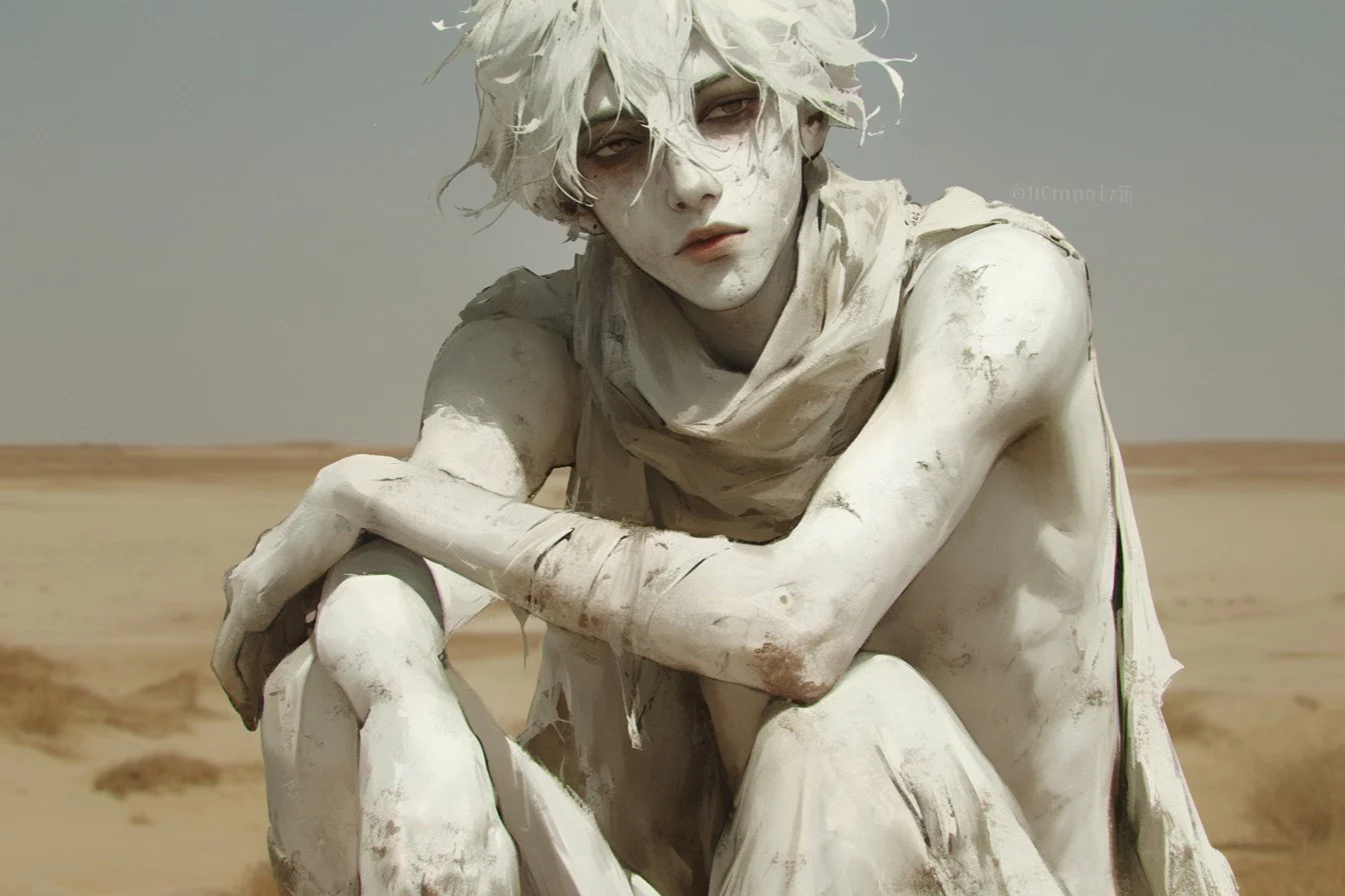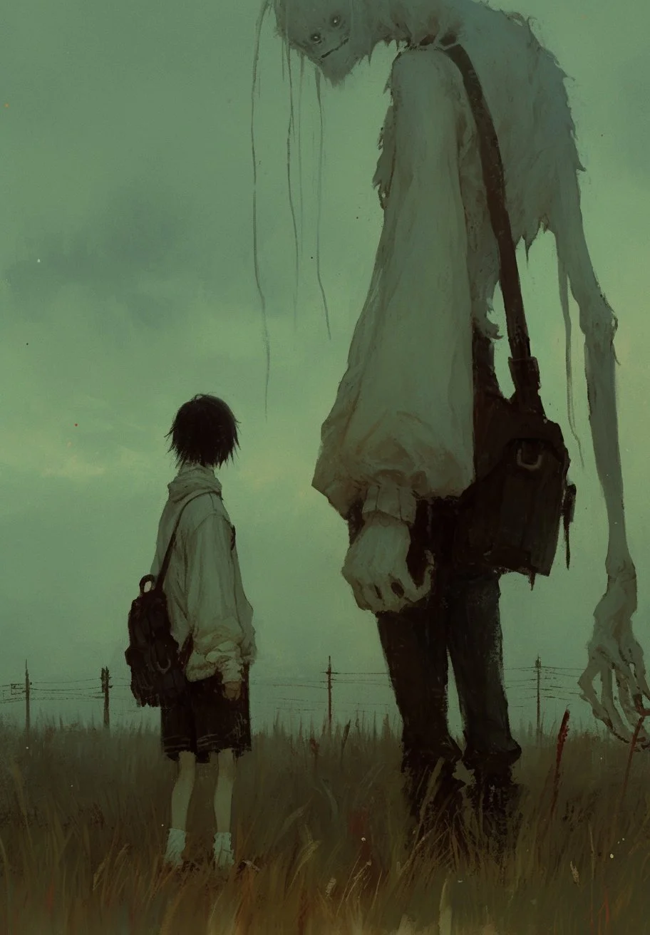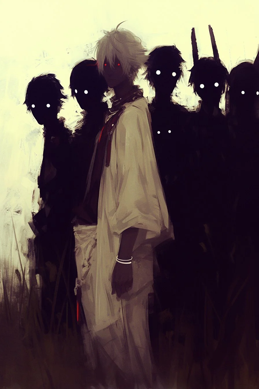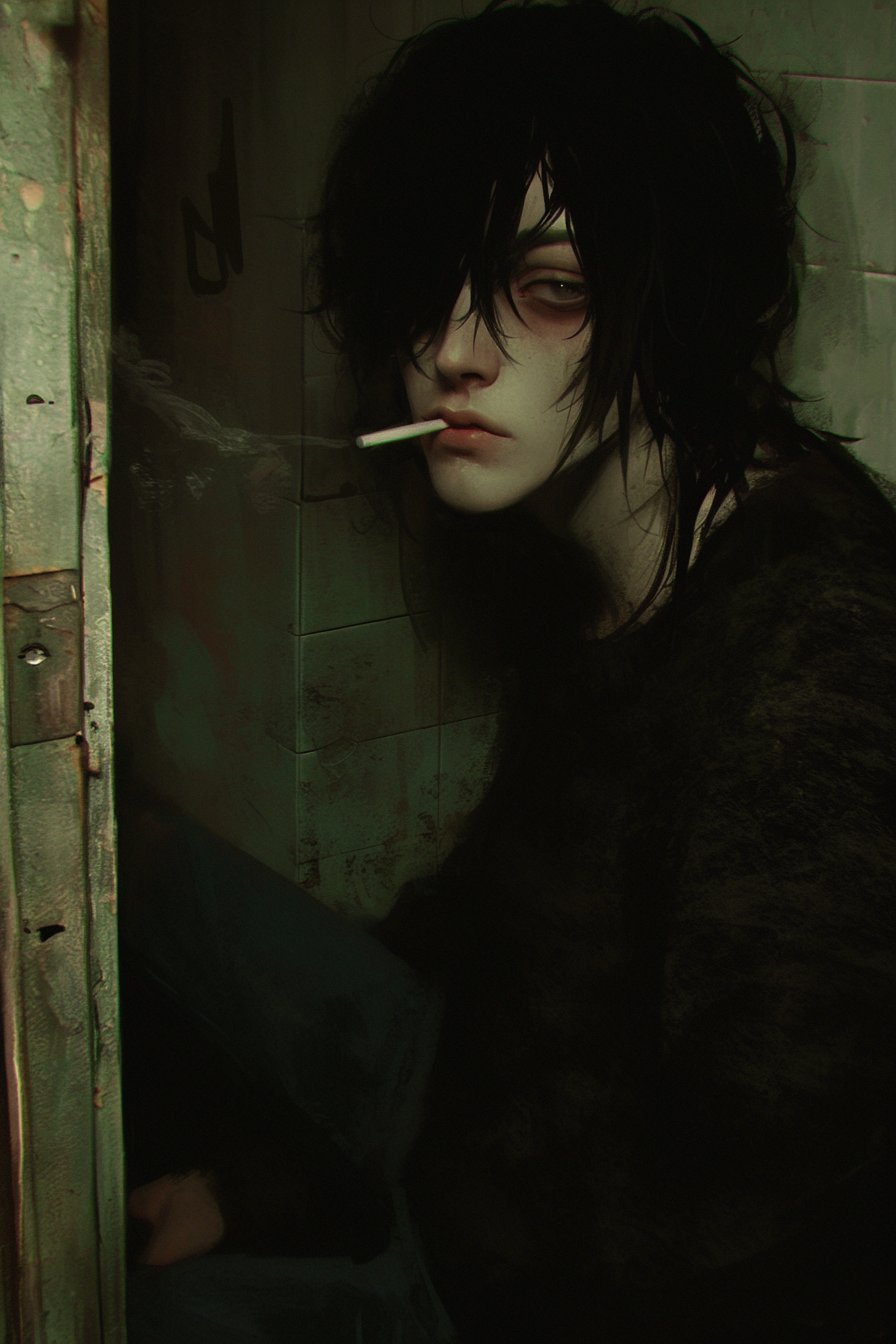 Lysxis’s technique is as unusual as his themes. He works almost exclusively with Midjourney’s Niji mode, a model designed for anime and Eastern-style aesthetics, but he twists its bright conventions into something altogether more uncanny. The colors are muted, and washed-out tones elevate the sense of disquiet. His prompts are often lines of poetry or surreal fragments of writing—dreamlike cues that yield raw, unpredictable visuals. This poetic approach shows that his work is less about perfection and more about feeling—about glimpses of a tender, broken world trying to make sense of itself.