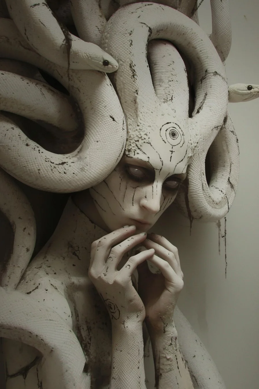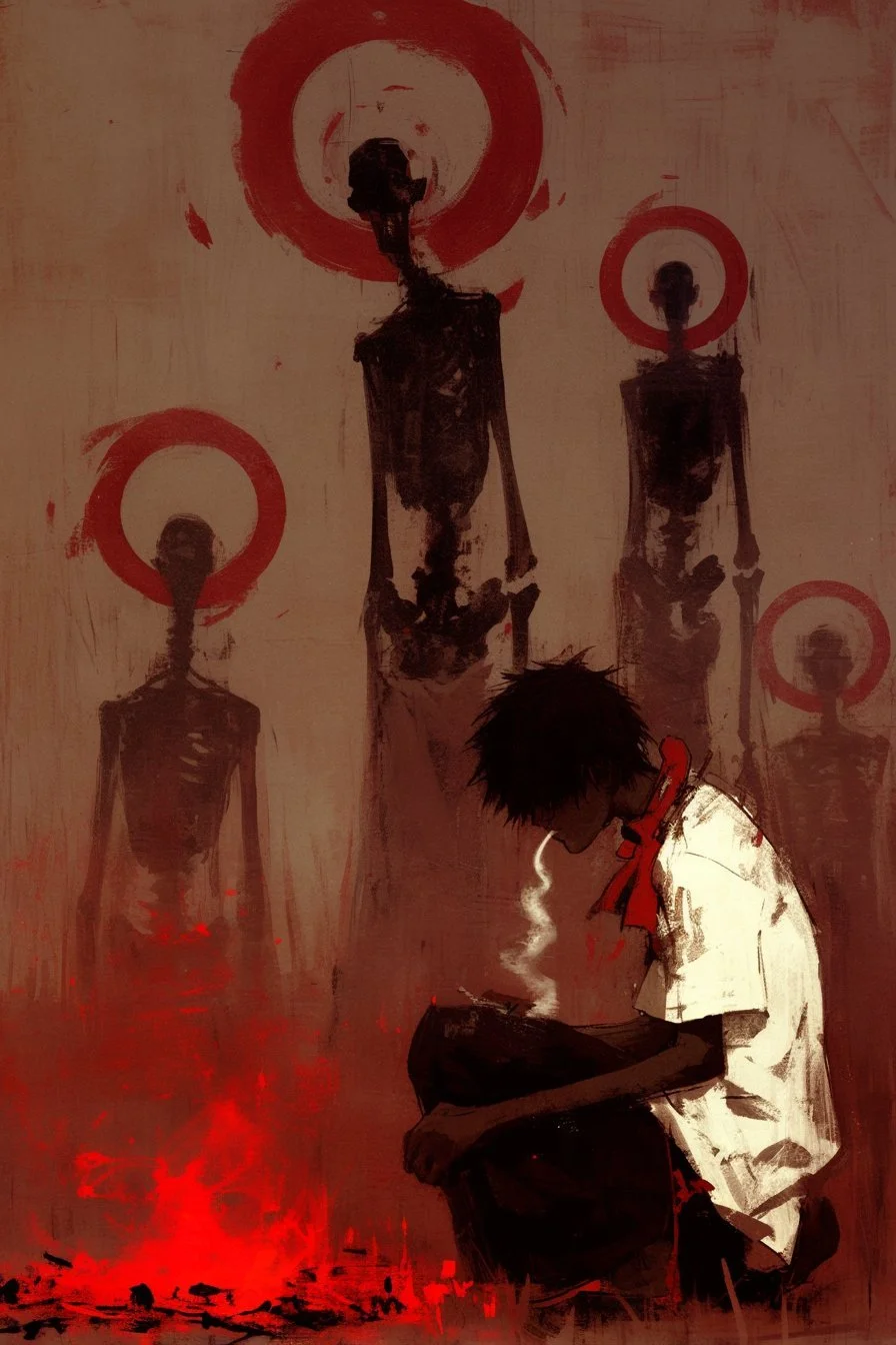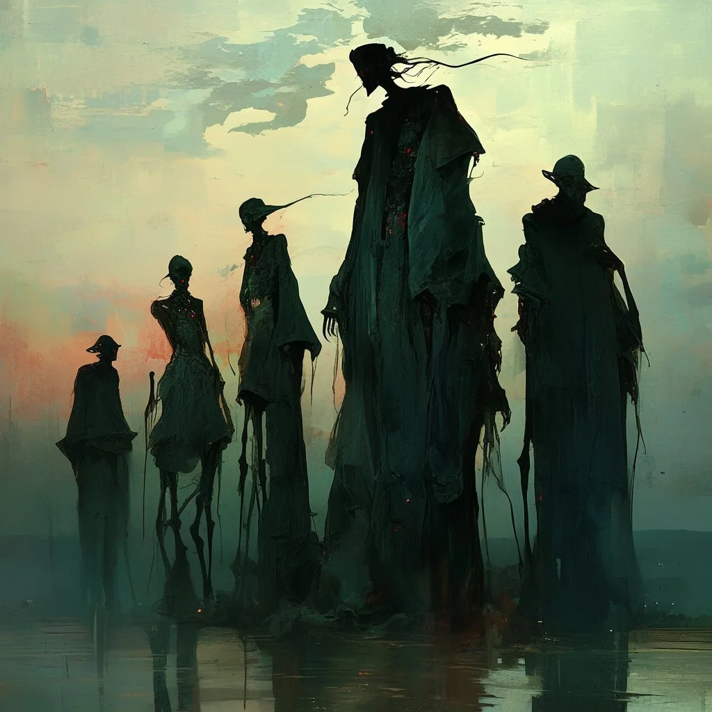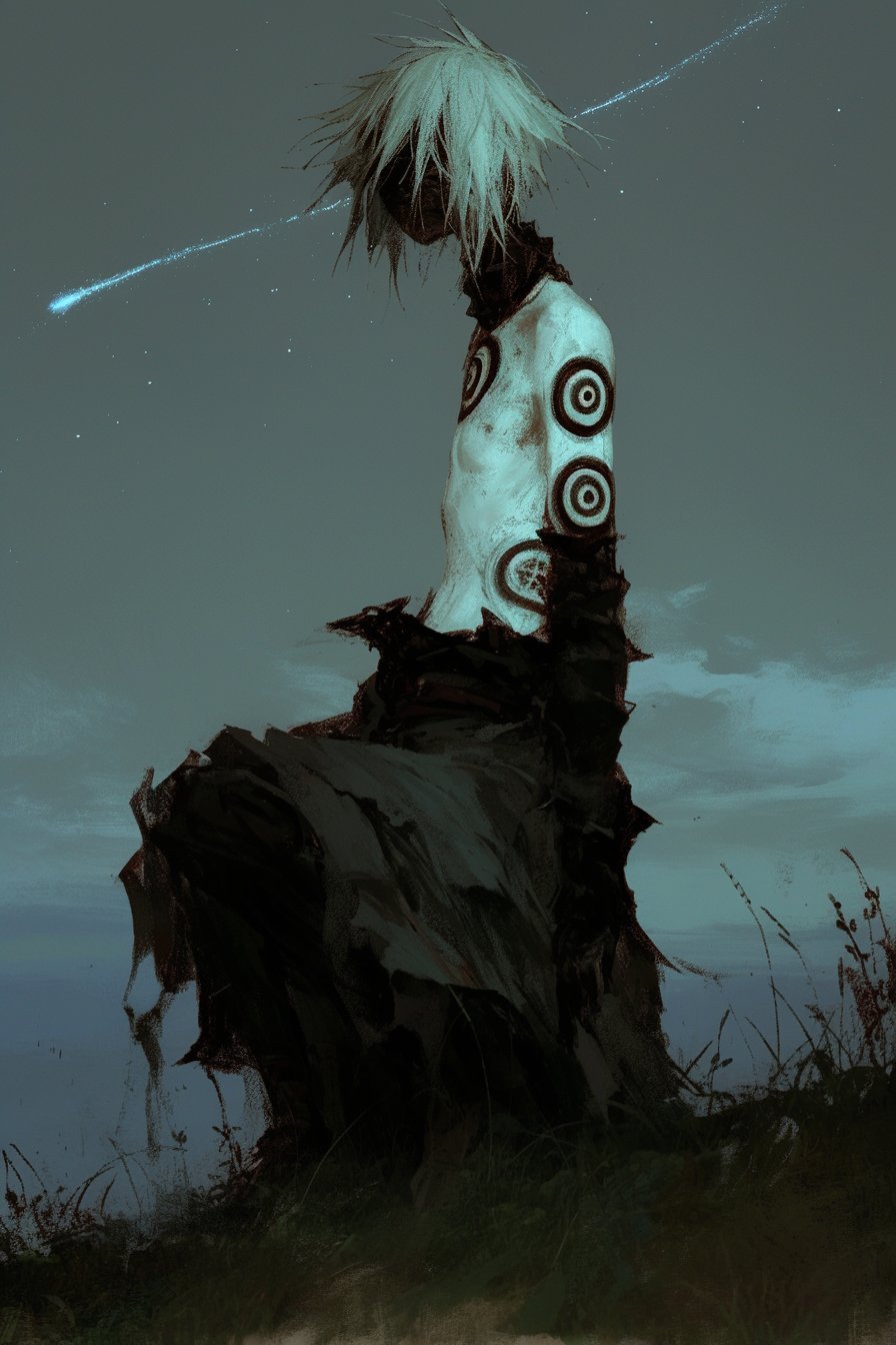 Lysxis’s technique is as unusual as his themes. He works almost exclusively with Midjourney’s Niji mode, a model designed for anime and Eastern-style aesthetics, but he twists its bright conventions into something altogether more uncanny. The colors are muted, and washed-out tones elevate the sense of disquiet. His prompts are often lines of poetry or surreal fragments of writing—dreamlike cues that yield raw, unpredictable visuals. This poetic approach shows that his work is less about perfection and more about feeling—about glimpses of a tender, broken world trying to make sense of itself.