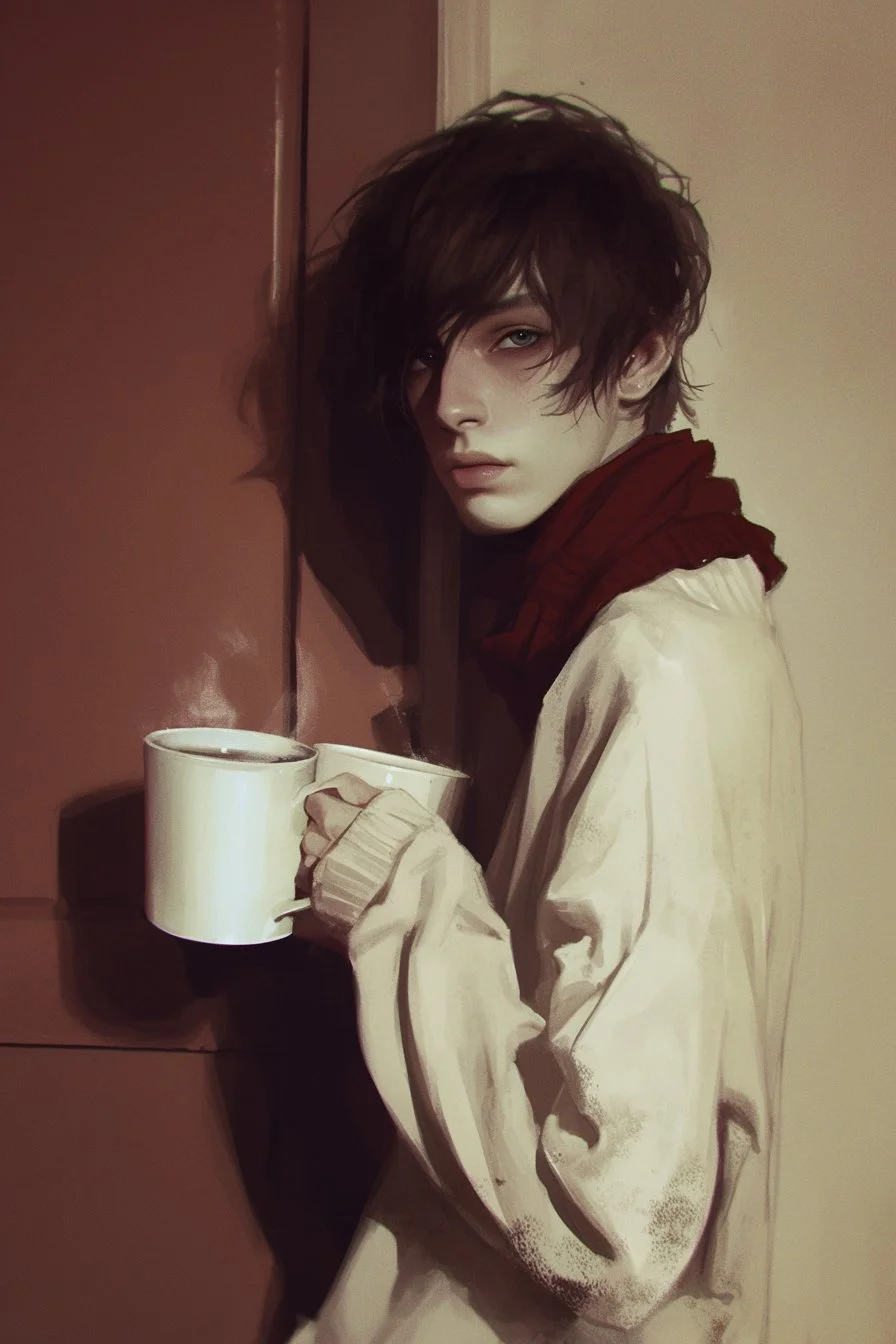 In Lysxis's universe, symbols matter—eyes, dice, antlers, halos, spirals—and so does ritual. Some of his characters appear mid-transformation or mid-ritual, caught in some alchemical moment between boy and beast, light and void, or simply trapped by nefarious forces whose intentions are unclear—be they ghosts from the past or shadowy figures from the present, poised to become future tormentors. But Lysxis always brings it back home, where, in the comfort of his many “Good morning” posts, his subject simply poses and sips black coffee while the world ends outside. Ultimately, Lysxis's work is a study in subtle rebellion: a rebellion against silence, against conformity, and, most importantly, against forgetting. I am honored to feature him in this interview.