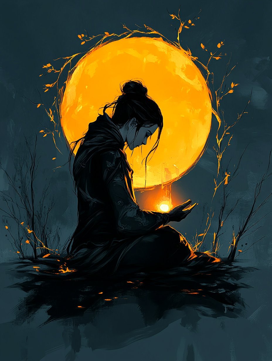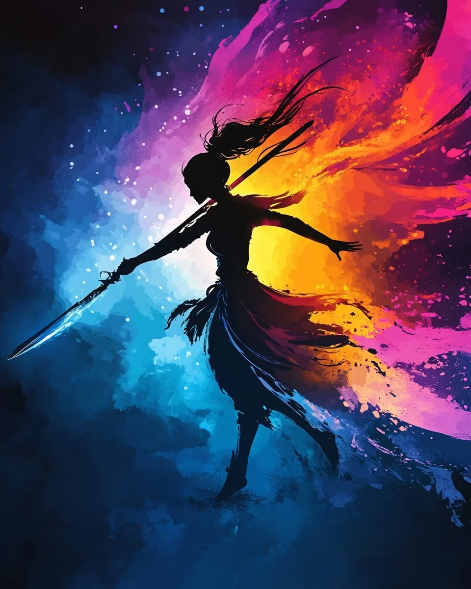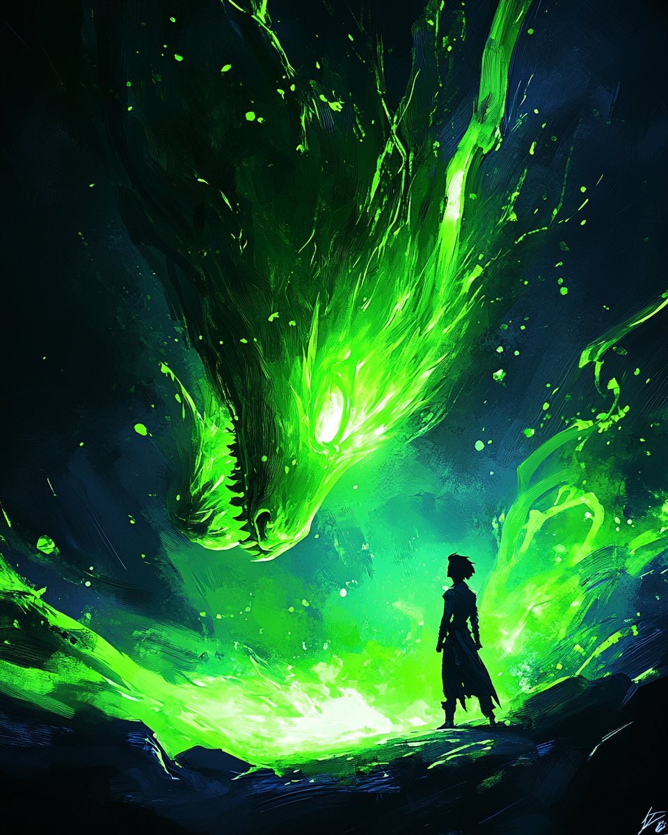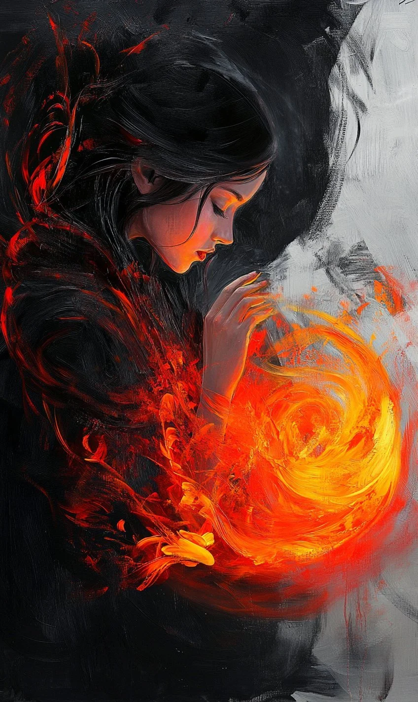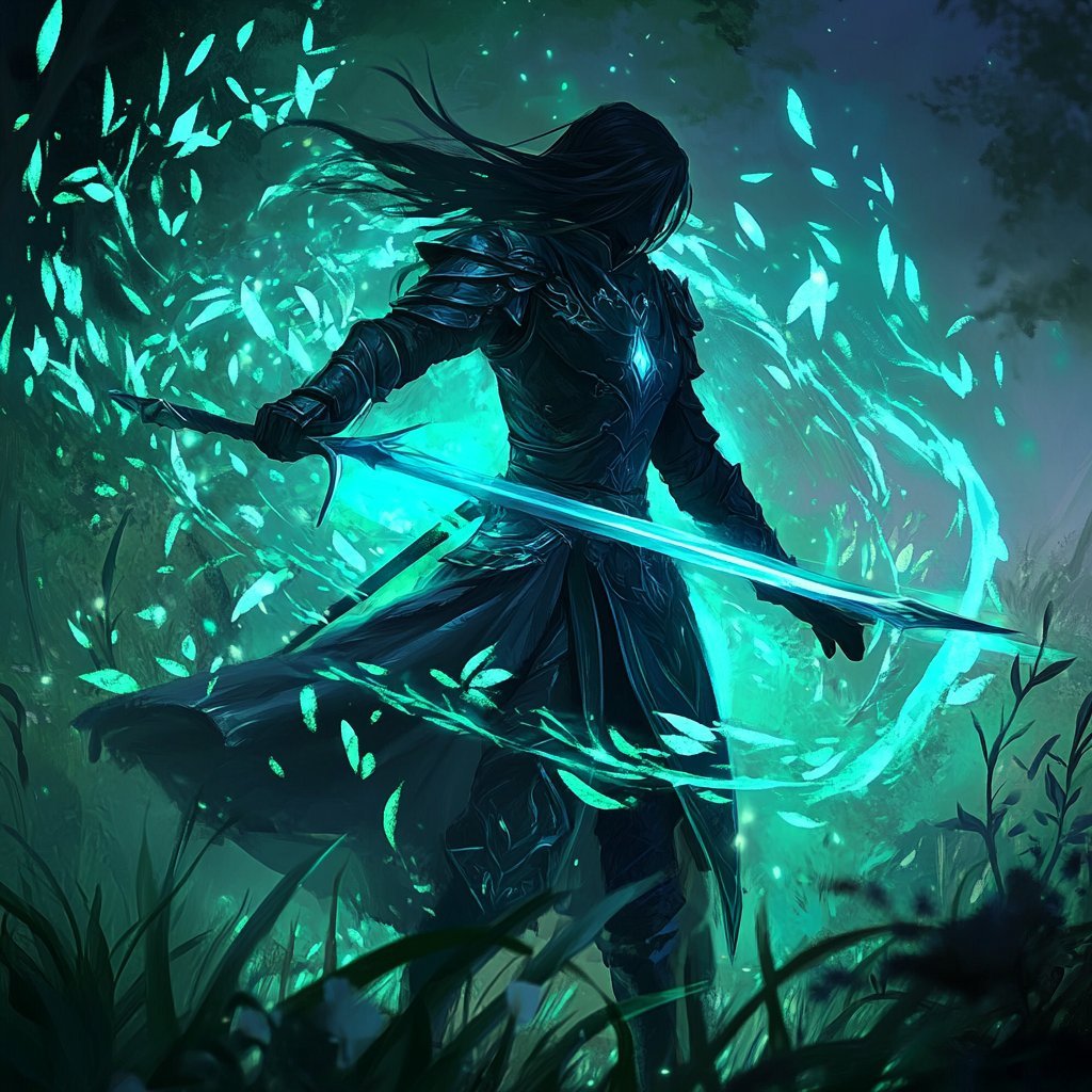 An AI enthusiast and hobbyist worldbuilder, Magik Chance crafts images that evoke the enchanting realms of classic fantasy illustrations or video game concept art. Her color palette often centers around deep blacks, rich ambers, and fiery oranges, contrasted with neon purples and electric blues (bringing to mind, for example, the gorgeous tones of such games as Ori and the Blind Forest). Each piece she creates is imbued with a sense of wonder, where characters feel poised on the brink of adventure, inviting us to explore the unknown.