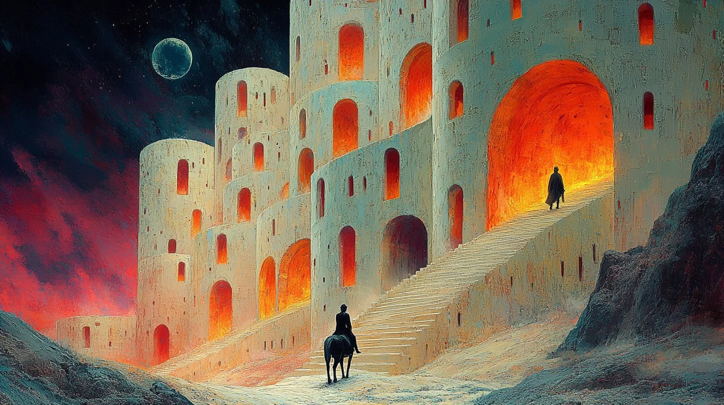 A world of ancient fables, twisted labyrinths, and cosmic musings unfolds in the art of Mitra, a former analog and digital illustrator now exploring the limitless potential of AI. With a self-described grumpy demeanor but an artist’s relentless curiosity, he crafts fantasy and surreal landscapes that feel both timeless and profound. His works are not just paintings; they are portals to mythic realms, where the weight of history, philosophy, and imagination converge.