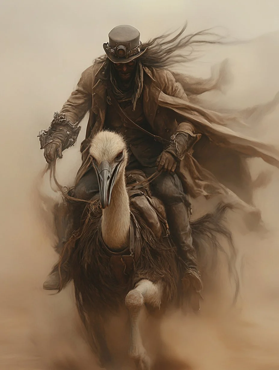 One of his most captivating series, “Great Sands,” immerses viewers in desert landscapes steeped in ancient lore. Maps, monsters, and ominous creatures roam the dunes, whispering tales of forgotten civilizations and fabled horrors. These are not mere illustrations; they are fragments of a lost mythology, rich with mystery and danger.