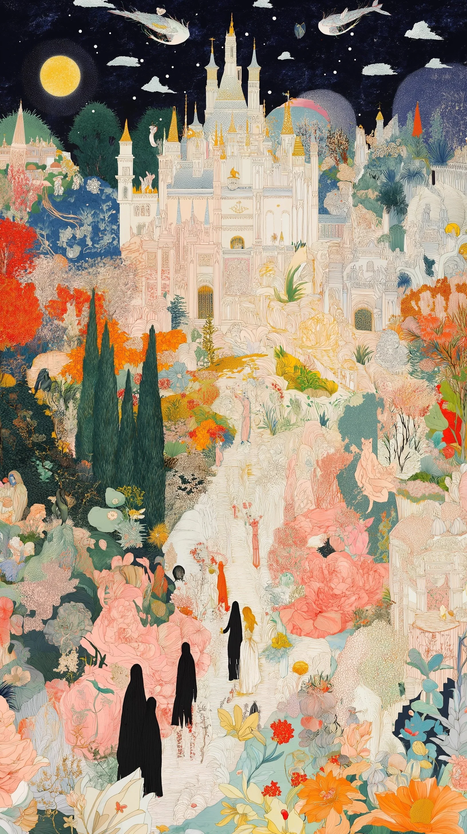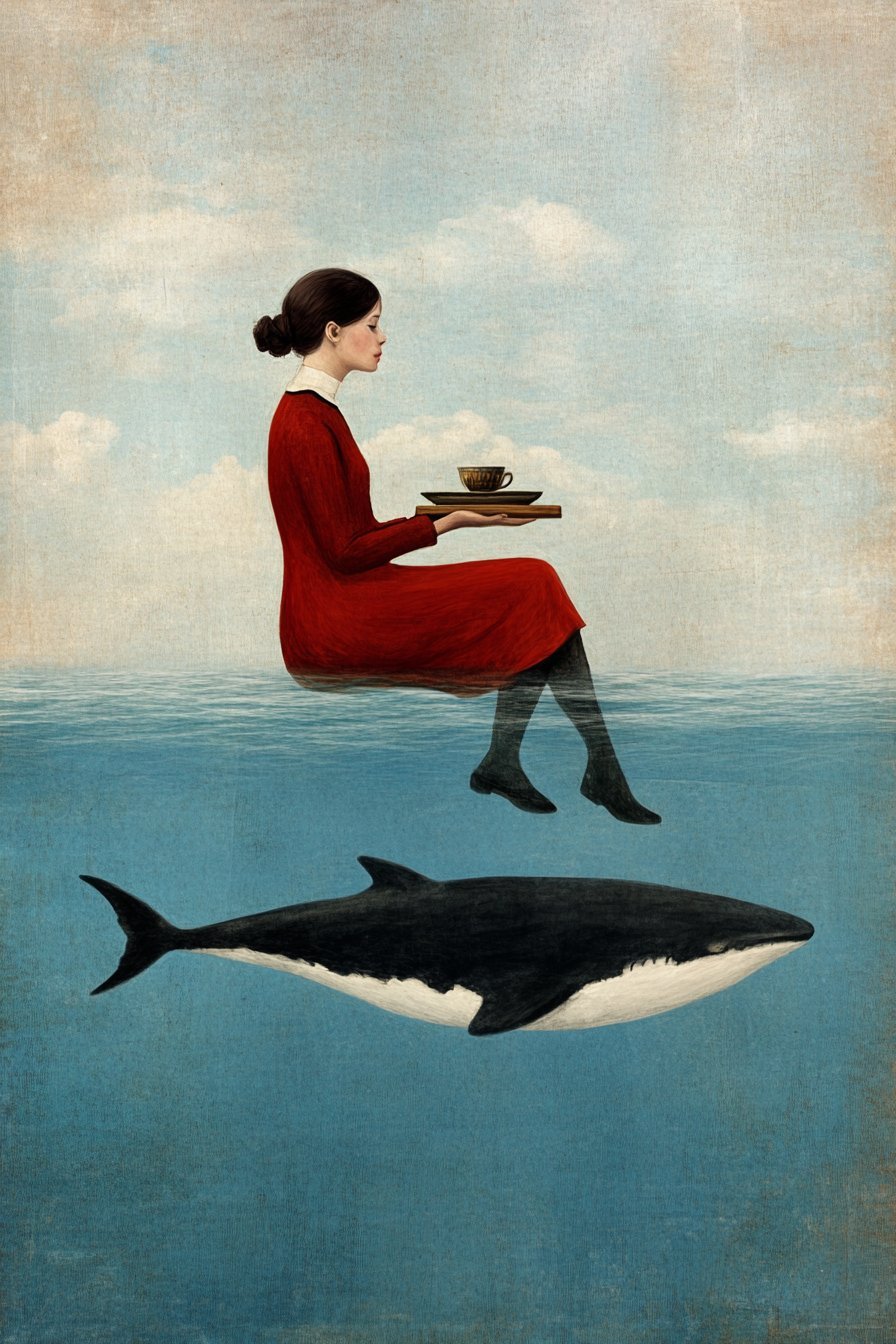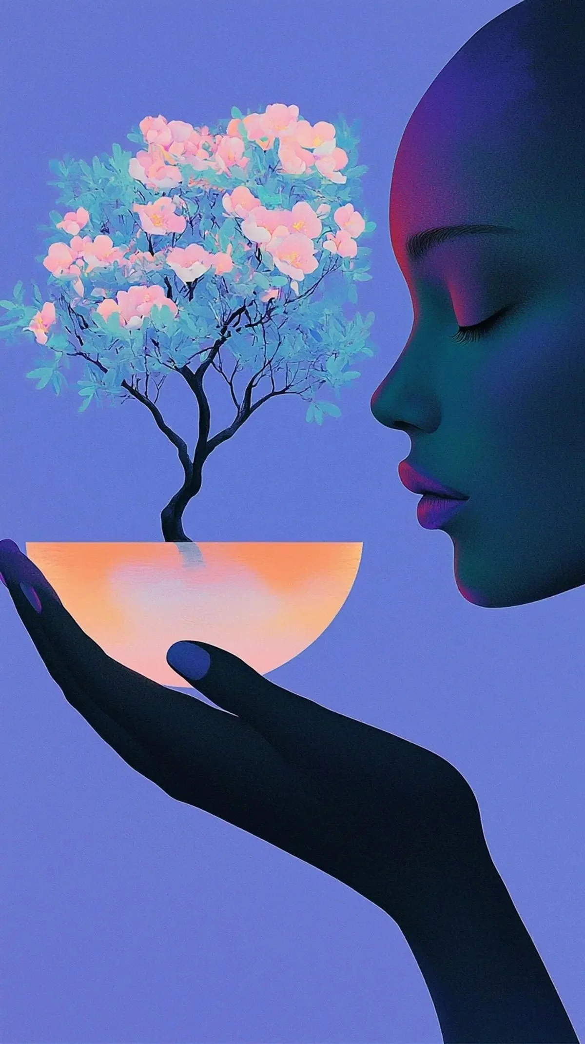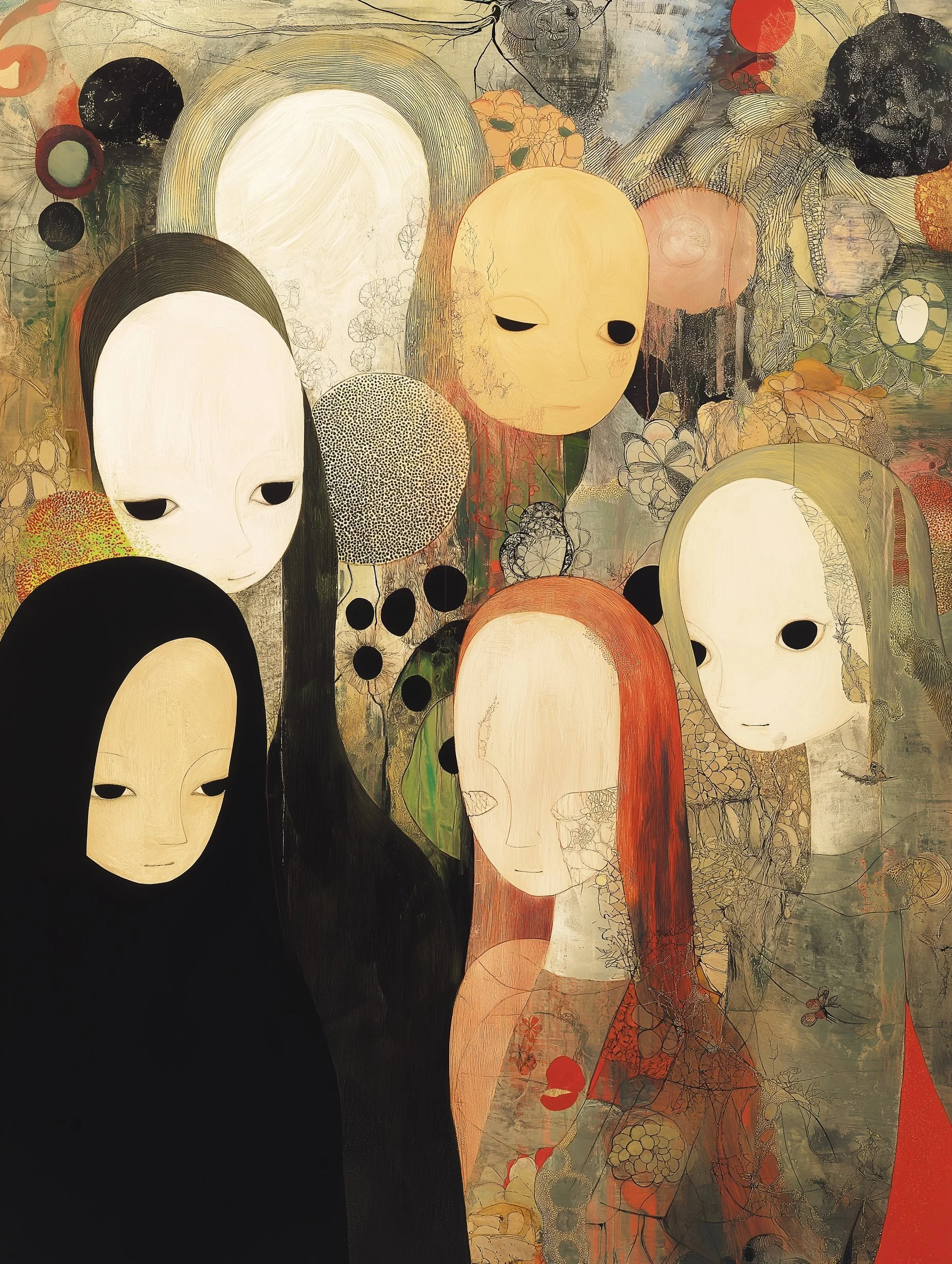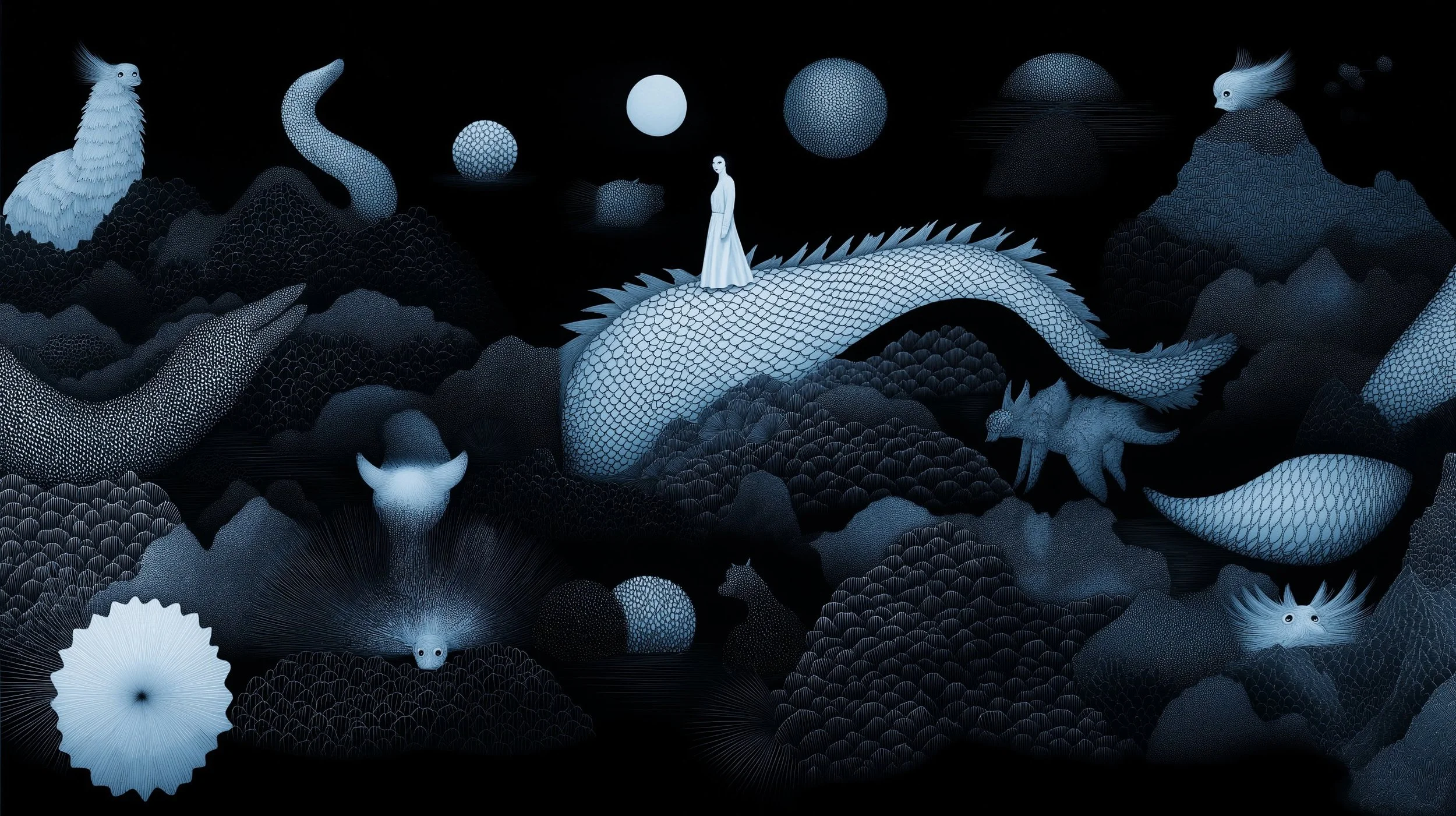 Her art is a fusion of surrealism, fantasy, and symbolic storytelling, marked by dreamlike compositions, ethereal lighting, Japanese influence, and intricate detailing. She crafts otherworldly scenes, where figures seem to transcend time and space, evoking themes of journey, transformation, and cosmic rebirth. Her mastery of light and contrast creates an immersive, almost mystical atmosphere, with her signature elongated portrait compositions adding to the elegance of her visual storytelling. With textures that feel fluid and organic, celestial elements, and striking color palettes, her work invites the viewer into a realm both tactile and metaphysical—a balance of reality and dream, where each piece tells a story of mystery, contemplation, and the sublime.