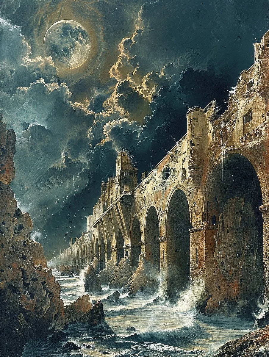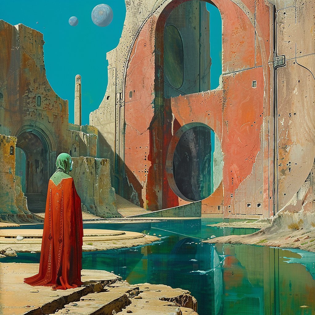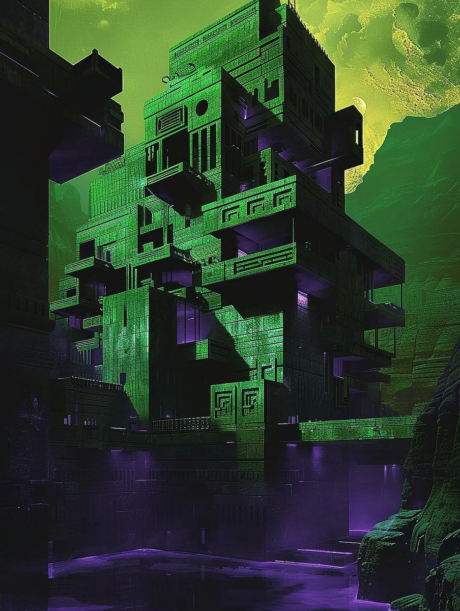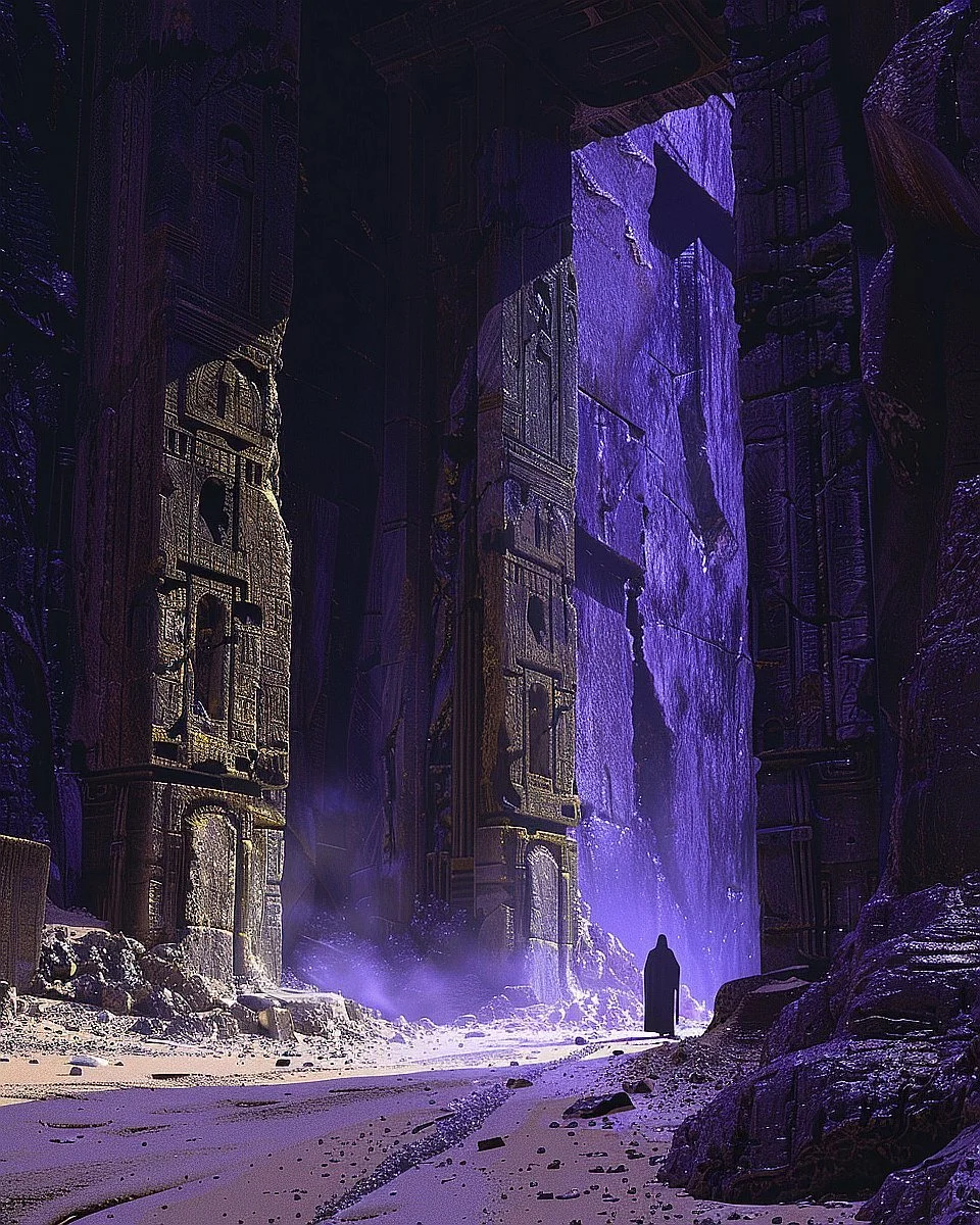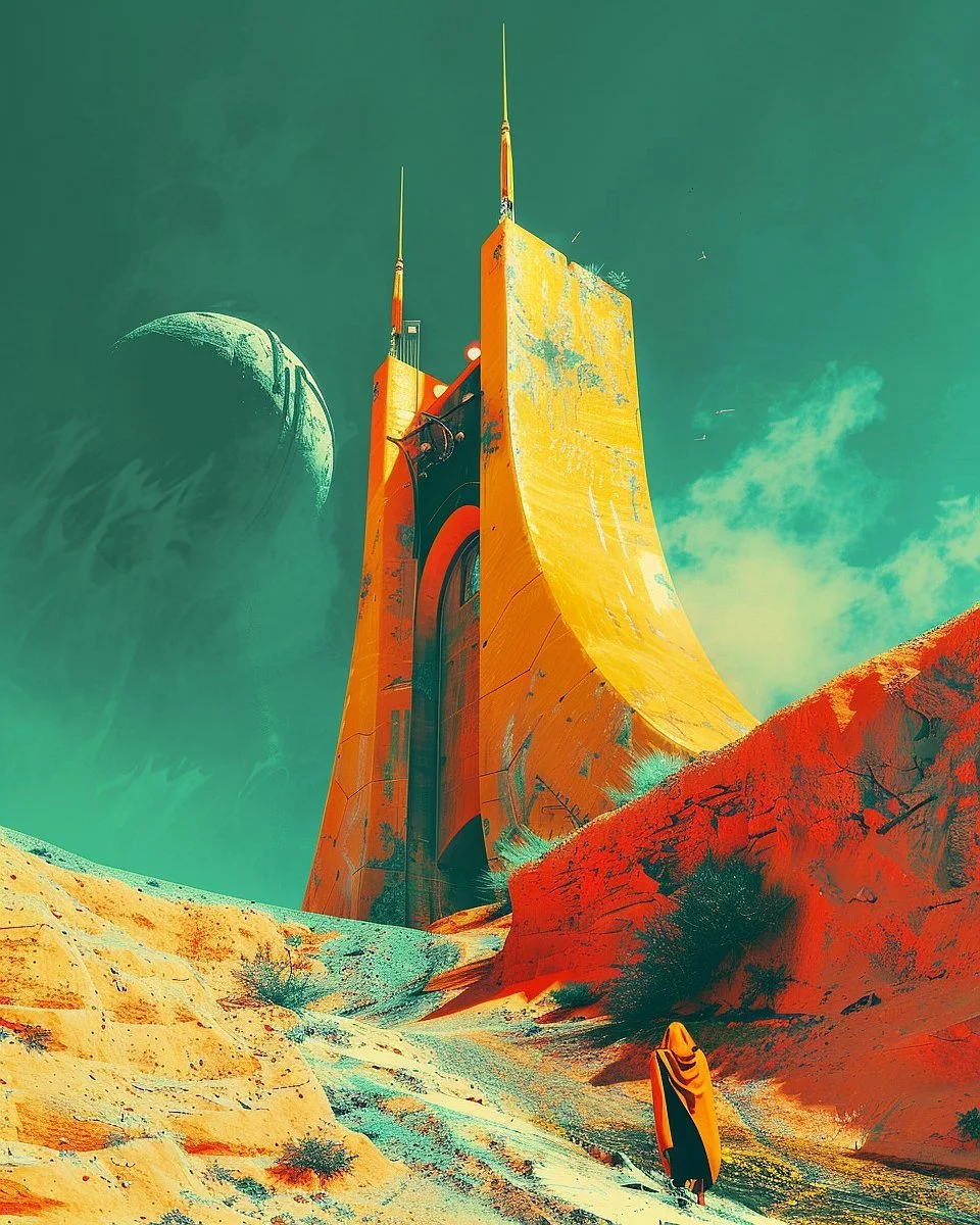 I immediately loved the style of Piotr Binkowski, a remarkable AI artist from Poland who consistently generates stunning art. Each piece invites viewers into a world where imagination soars, often depicting massive buildings, circular and likely magical portals, mysterious gateways, and futuristic or ancient alien structures.