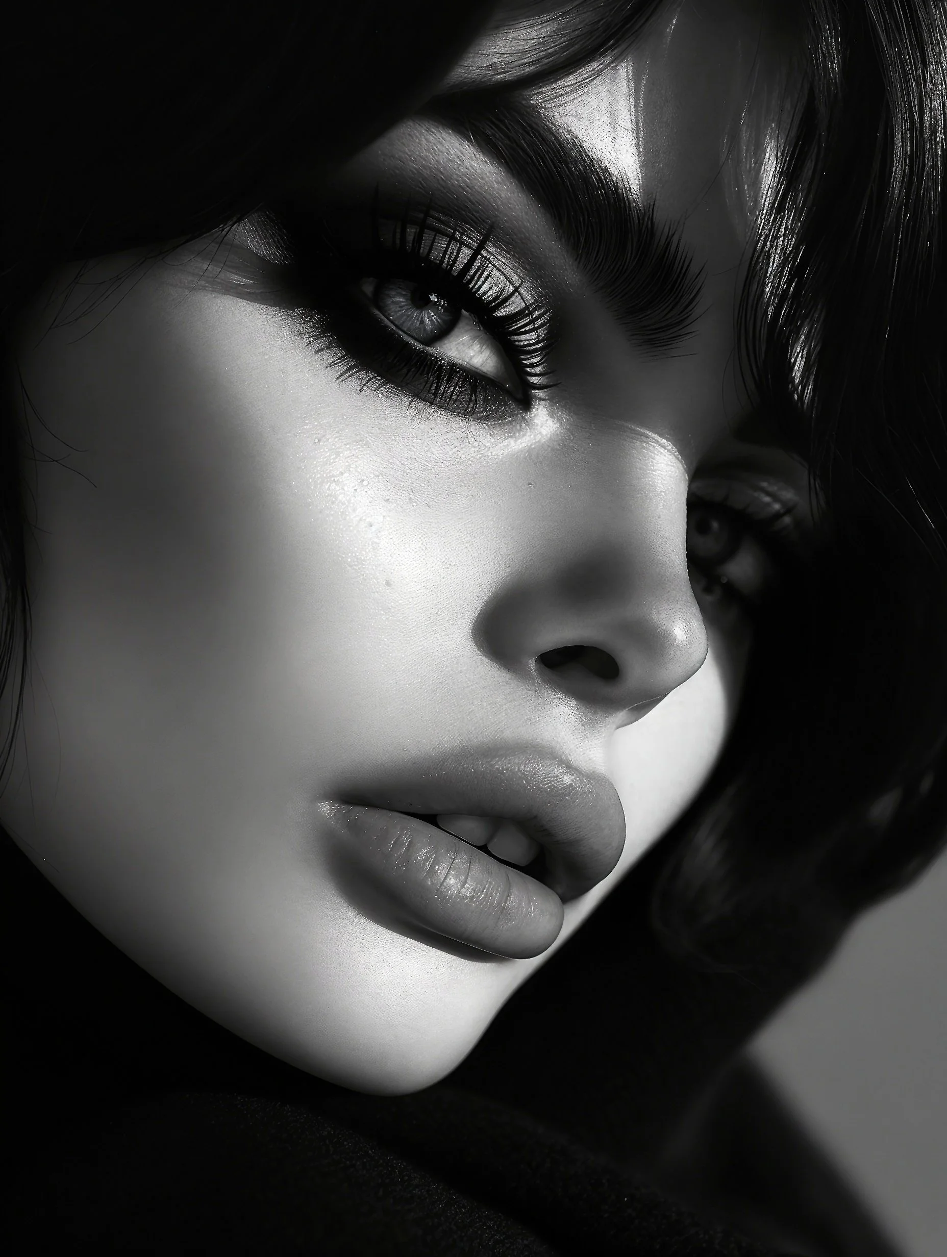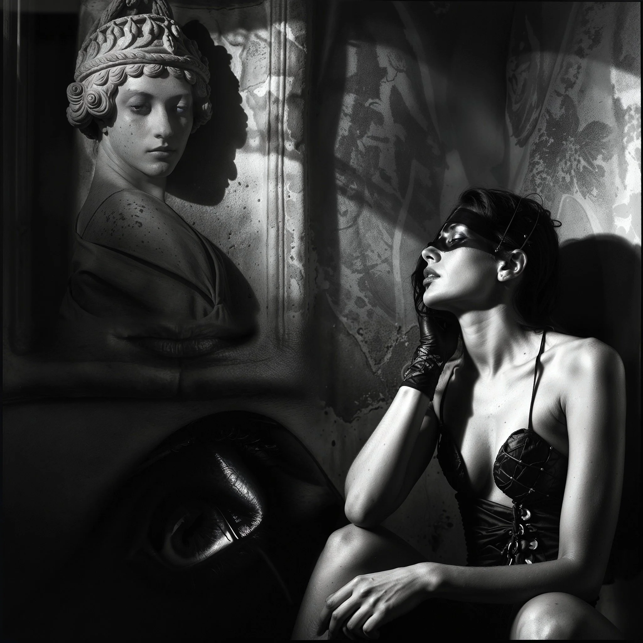 Tazibao’s photographic pieces often blur—if not obliterate—the lines between reality and AI-generated art. She exhibits mastery with black-and-white stills, creating images that evoke elegant fashion or the glamour of classic cinema while pushing the boundaries of contemporary digital art. (For me, I would even say that some of her work exudes a certain Hollywood elegance, capturing the timeless allure of icons like Audrey Hepburn and others, and I love it!)