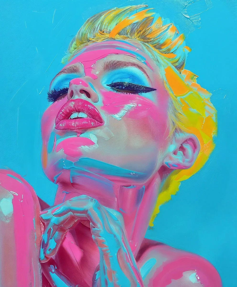 But tazibao is also the queen of color! With a keen eye for high and stylish fashion, she spans the decades, from retro to contemporary, infusing her creations with bright, pop vibes that are both vibrant and visually sophisticated. Her stellar work has been featured in Midjourney Magazine (Issue 13), undeniably cementing her place as a true visionary with a strong sense of graphic visuals, colors, and composition.